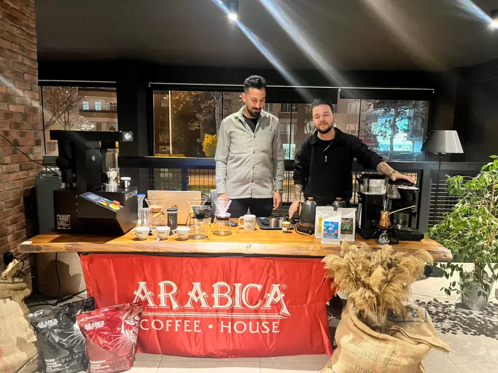 Arabica Coffee House Eğitim Departmanı’ndan Barista eğitmenleri Ufuk Çat ve Ali Kaan Tuzsuz, 12 Aralık Salı günü kahveseverlerle buluştu. Arabica Coffee House Çorum Şubesi’nde yapılan etkinlikte kahveseverler kahvenin hikayesini dinledi, tüm üretim süreciyle ilgili bilgi aldı.