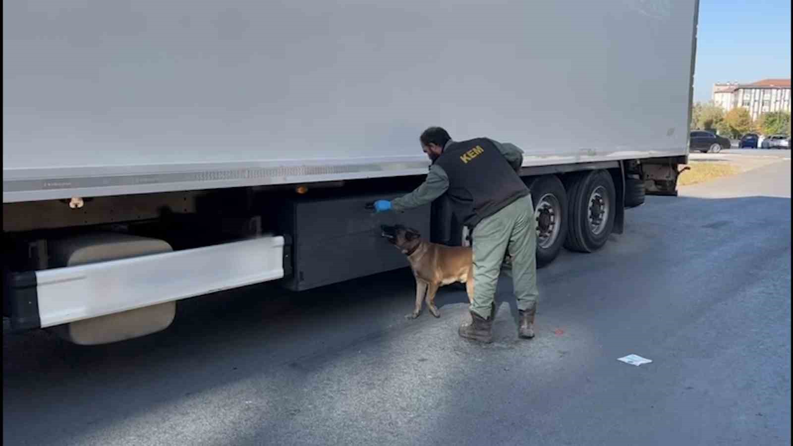 Tırların deposunda bulunan bidonları koklayan narkotik dedektör köpek Carlos’un tepki vermesi üzerine ekipler harekete geçti. Edirne’de Narkotik Suçlarla Mücadele Şube Müdürlüğü, Kaçakçılık ve Organize Suçlarla Mücadele (KOM) Şube Müdürlüğü ve İstihbarat Şube müdürlüğü ekipleri, narkotik dedektör köpeği Carlos’un da katılımıyla Kapıkule Gümrük Müdürlüğü ekipleriyle koordineli çalışması sonucu tır parkındaki E. K. ve D. Ş. İsimli şahıslara ait 2 tırda arama yaptı.