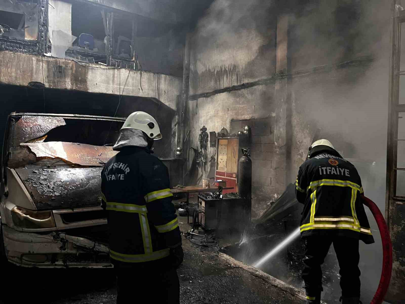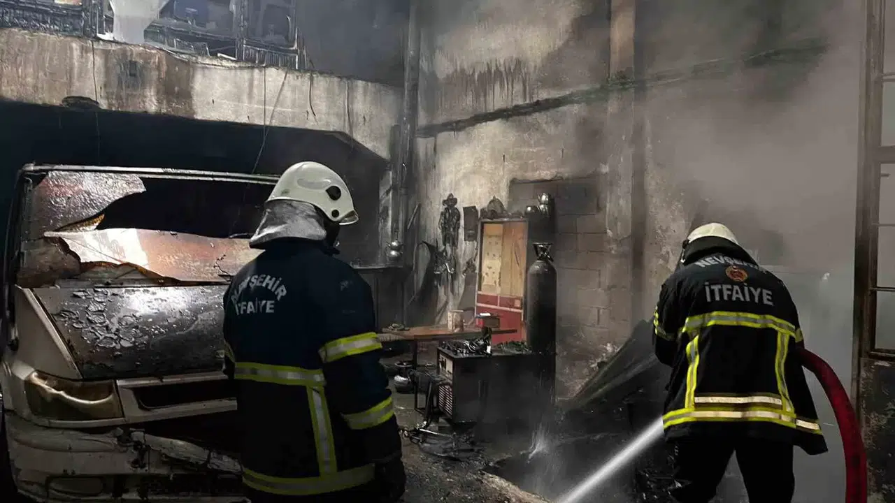 Nevşehir’de oto kaporta servisinde çıkan yangın büyük hasara neden oldu.