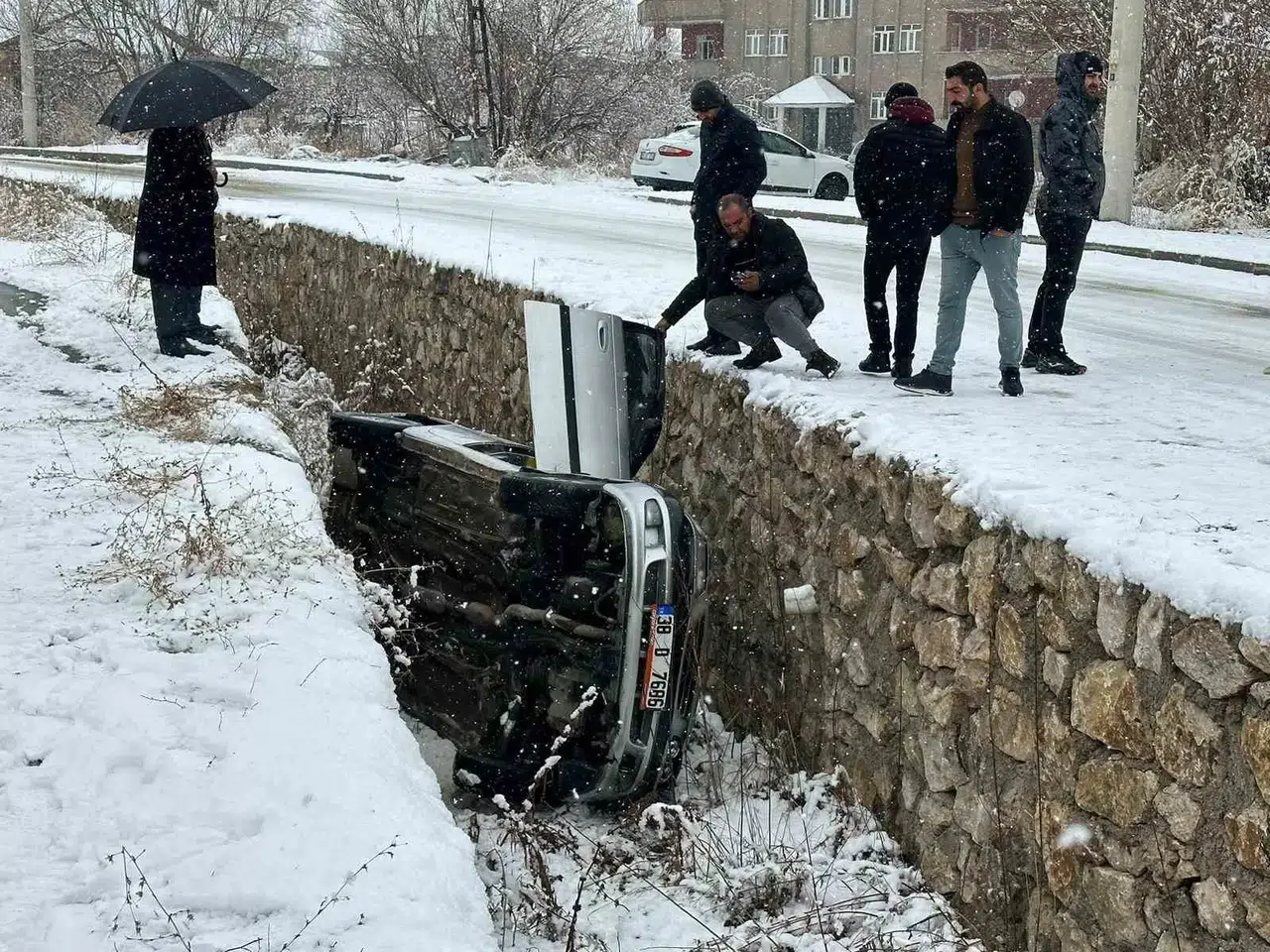 Edinilen bilgilere göre kaza, sabah saatlerinde ilçenin Esentepe Mahallesi’nde meydana geldi. Mahsun Kaya idaresindeki 38 D7 686 plakalı araç, çarşı merkezi istikametine gittiği sıradan yoğun kar yağışından dolayı kontrolden çıkarak dereye düştü. Araç sahibi Mahsun Kaya yara almadan kurtulurken, polis ekipleri de bölgede önlem aldı.