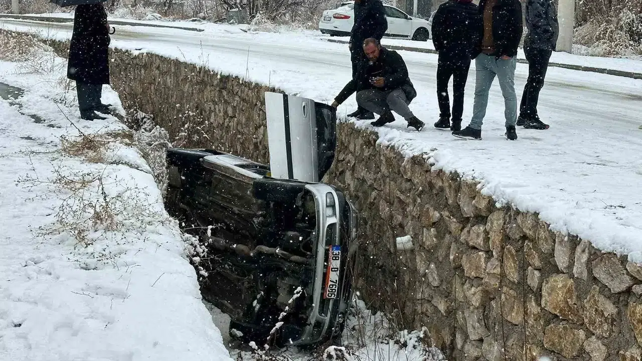 Kar Yağışı Kazaları Beraberinde Getirdi: Kayan Araç Dereye Düştü