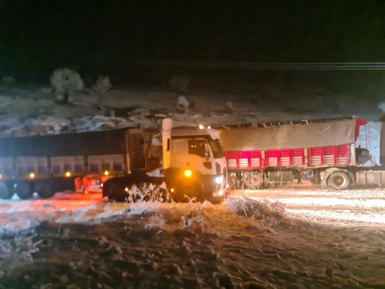 Mardin’in Derik ilçesinde gece saatlerinde başlayan kar yağışı kısa sürede ilçeyi beyaza bürüdü. İlçede etkisini sürdüren kar yağışı nedeniyle Mazıdağı-Derik yolu ulaşıma kapandı. Jandarma ekipleri güvenlik önlemleri alırken, yolda uzun araç kuyrukları oluştu.