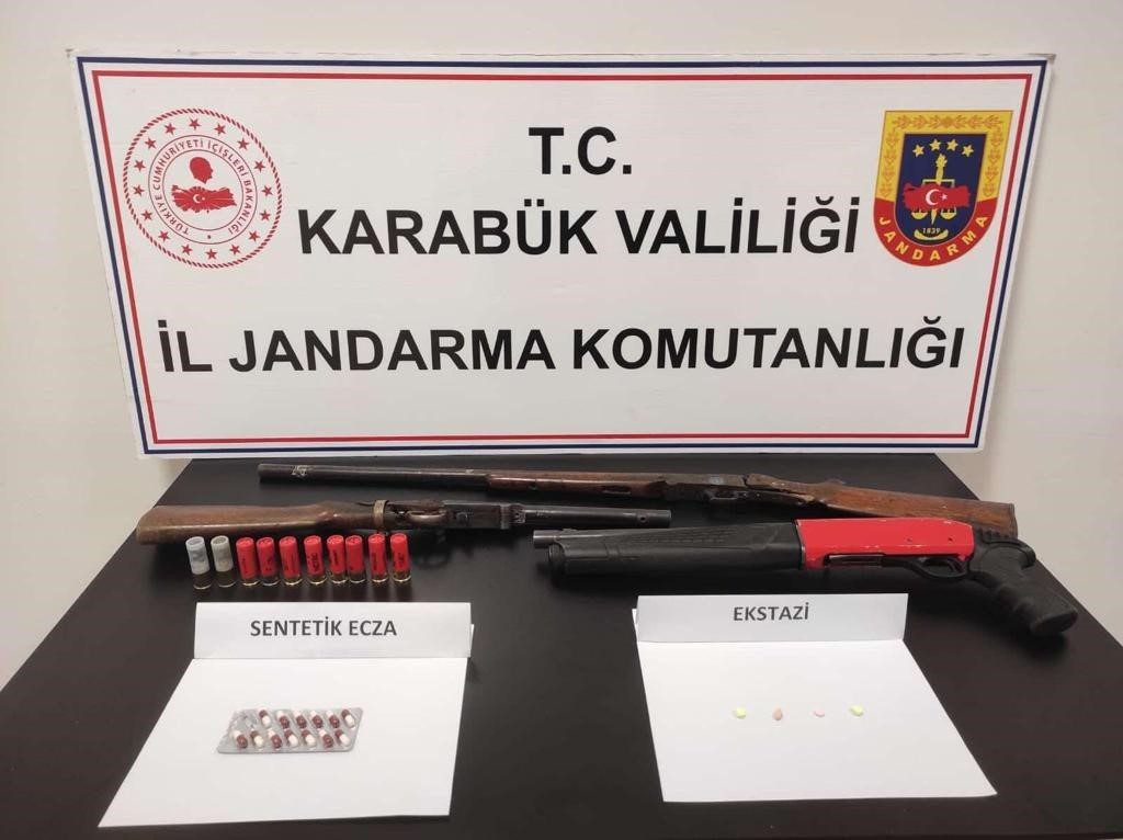Jandarma ekipleri, merkeze bağlı Cumayanı köyünde uyuşturucu ve uyarıcı madde bulundurduğu bilgisi aldıkları bir şahsın üzerinde ve ikametinde yaptıkları aramada ise 13 adet sentetik ecza hap, 4 adet ecstasy hap, 3 adet ruhsatsız av tüfeği ve 10 adet av tüfeği fişeği ele geçirdi.