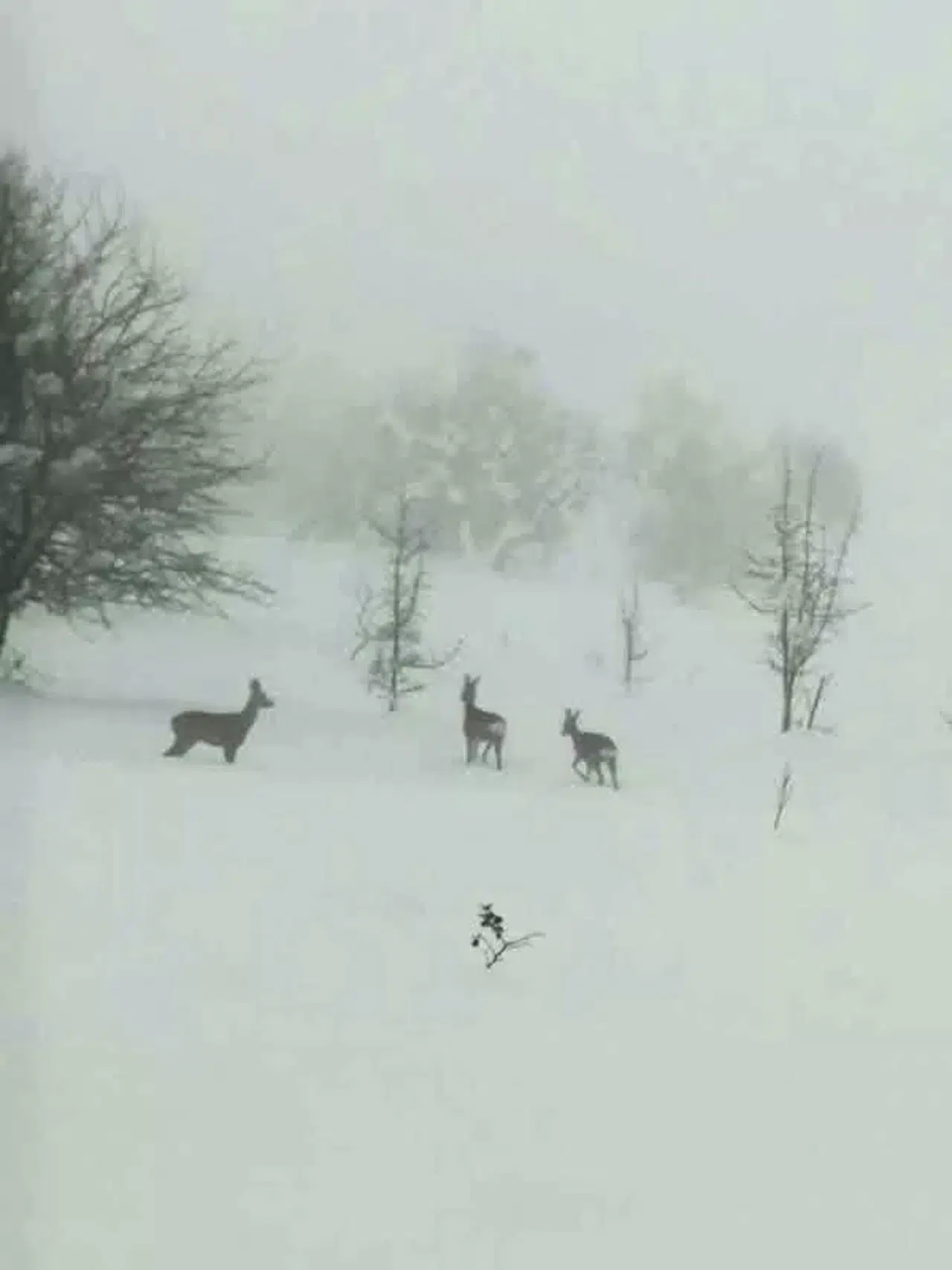 Aracıyla ilerleyen bir vatandaş tarafından karla kaplı arazide bekleyen 3 karacayı fark etti.