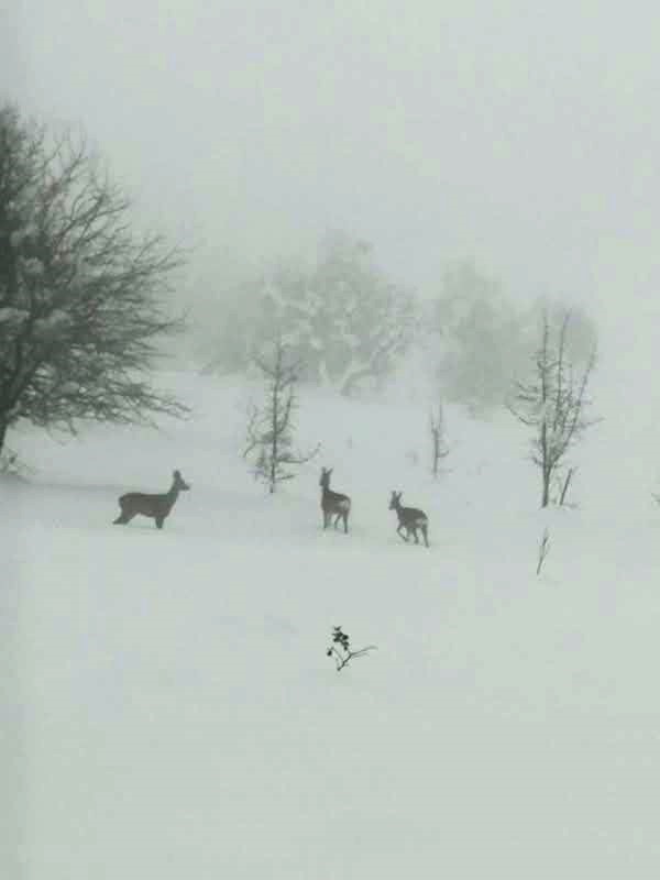 Karabük’ün Eflani ilçesinde karla kaplı arazide gezinen 3 karaca cep telefonu kamerası ile görüntülendi.