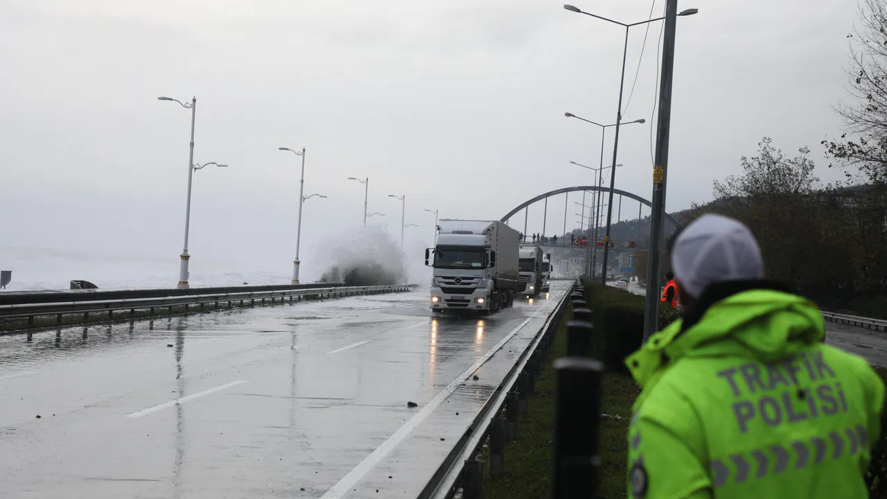 RİZE (AA) - Rize'de fırtınanın oluşturduğu dev dalgalar nedeniyle Karadeniz Sahil Yolu Çayeli-Trabzon istikameti trafiğe kapatıldı.
