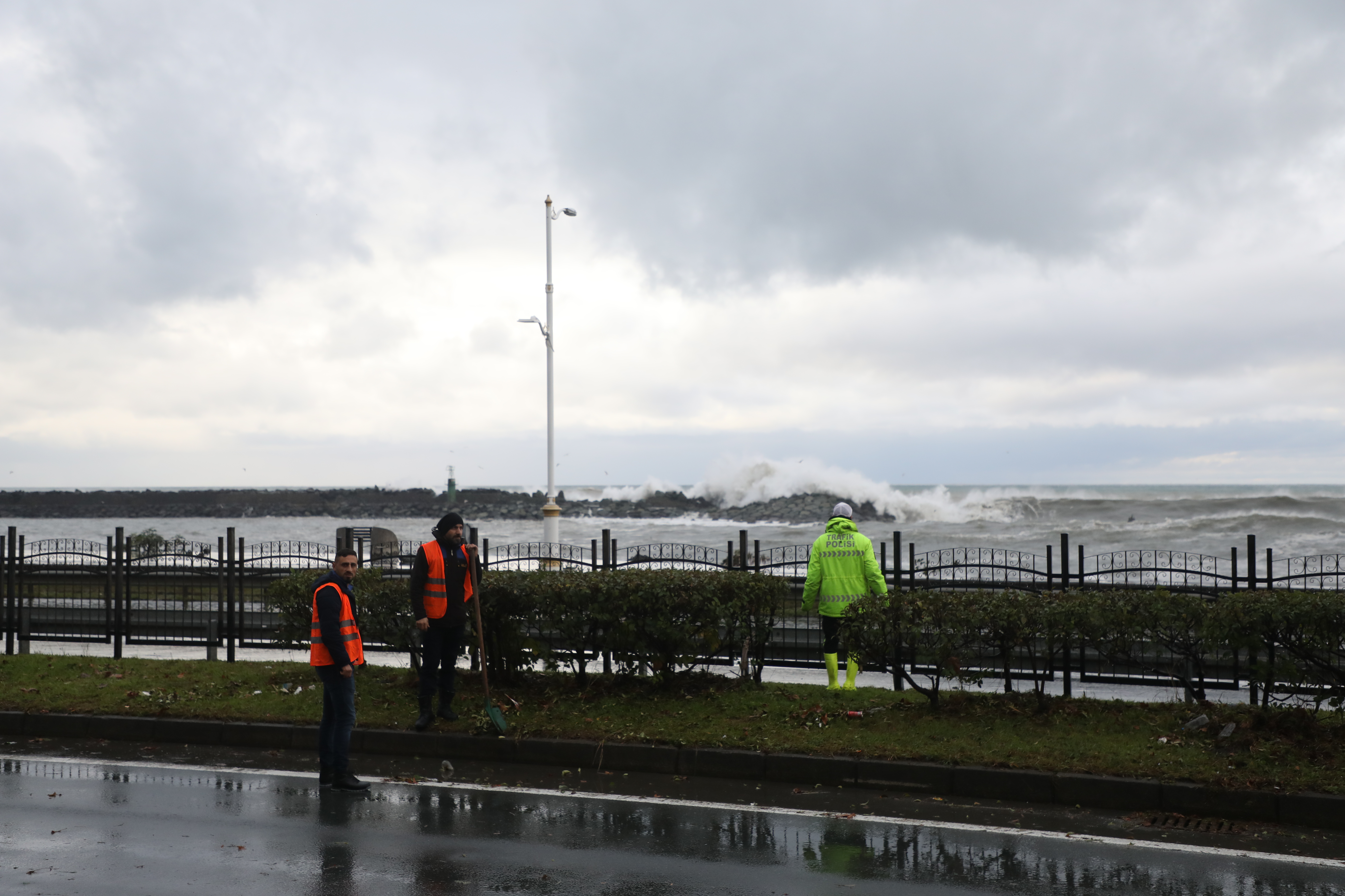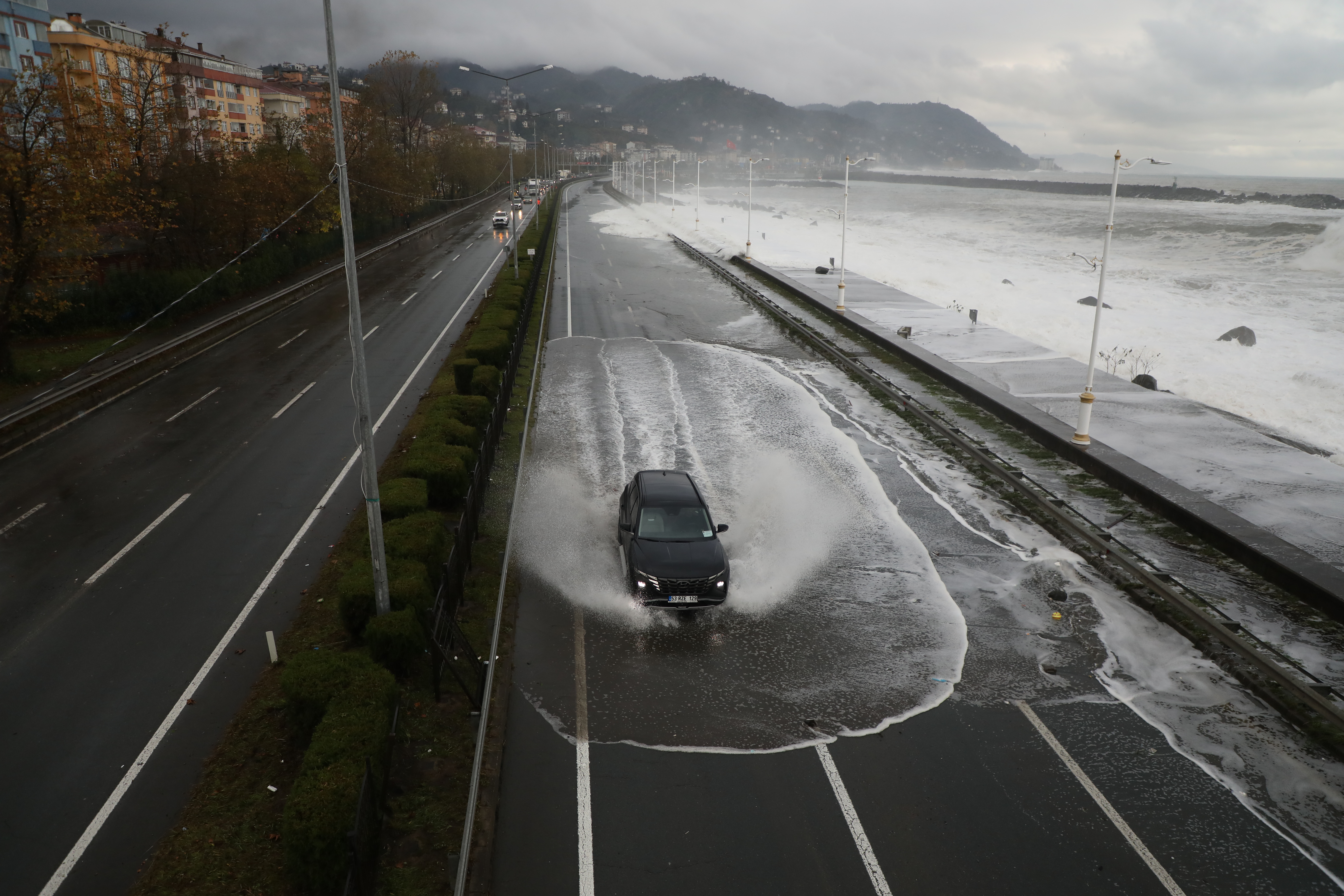Fırtınanın etkisiyle oluşan dalgaların Karadeniz Sahil Yolu'na kaya parçaları taşıması sonucu çok sayıda araçta hasar oluştu.