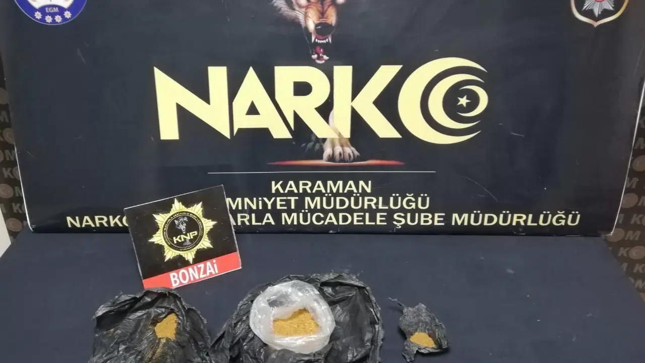Edinilen bilgiye göre, Karaman İl Emniyet Müdürlüğü Narkotik Suçlarla Mücadele Şube Müdürlüğü ekiplerinin, uyuşturucu madde ticareti ve kullanılmasının önlenmesine yönelik yürüttüğü çalışmada, O.Ü., V.Y. ve E.Z. isimli şahıslar gözaltına alındı. Şahısların bulunduğu araçta arama yapan ekipler 3 paket halinde 112 gram bonzai maddesi ele geçirdi. Emniyetteki işlemlerin ardından adliyeye sevk edilen şüphelilerden E.Z. isimli kadın tutuklanarak cezaevine gönderilirken, diğer şahıslar serbest bırakıldı.