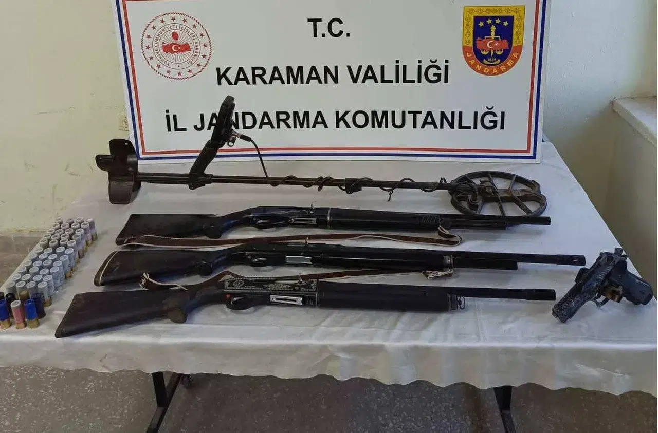 Edinilen bilgiye göre, Ermenek İlçe Jandarma Komutanlığı Jandarma Suç Araştırma Timi (JASAT) ve Kazancı Jandarma Karakol Komutanlığı ekipleri, kaçakçılıkla mücadele çalışmaları çerçevesinde H.B. isimli şahsın evinde arama yaptı. Yapılan aramada; 1’i Mersin’in Mut ilçesinde çalındığı belirlenen ruhsatlı av tüfeği ile 2 adet kaçak tüfek, 1 adet kurusıkı tabanca, 52 adet av tüfeği fişeği ile 1 adet metal arama dedektörü ele geçirildi. Gözaltına alınan H.B. hakkında adli işlem başlatıldı.