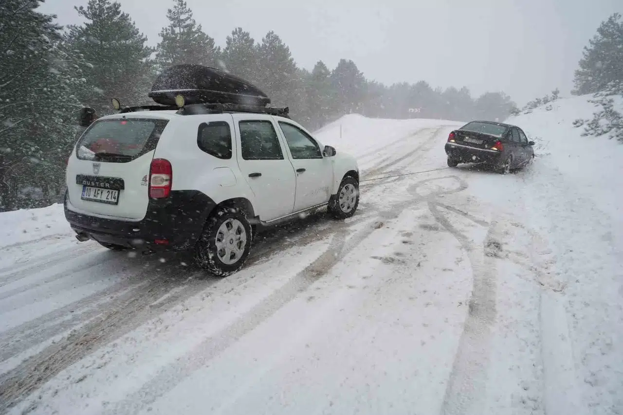Balıkesir’in Edremit ilçesi ile Çanakkale’nin Yenice ilçesi arasındaki yolda yoğun kar yağışı nedeniyle yoldan çıkarak mahsur kalan sürücüyü Kalkım Belediye Başkanı İbrahim Taşkın kurtardı.