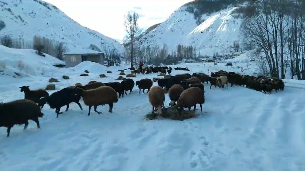 Bingöl’ün Karlıova ilçesinde etkili olan kar yağışı, besicilikle uğraşan vatandaşların işlerini zorlaştırıyor. Karlıova ilçesine yaklaşık 25 kilometre uzaklıkta bulunan Kaynarpınar köyündeki besicilerin birçoğu, kar yağışının ardından yaz aylarında biçtikleri otları at veya kızaklarla taşıyarak hayvanlara ulaştırıyor. Baba mesleği olan besiciliği yıllardır sürdüren 4 çocuk babası Fazlı Gürgen (44), her gün erken saatlerde uyanarak zorlu mesaiye başlıyor. Yaklaşık 100 adet küçükbaş hayvanı olan Gürgen, günde birkaç kez hayvanlarını kar üstünde otlatmak için yaz aylarında biçtiği otları kızağa yüklüyor ve 1,5 kilometre boyunca taşımasını yapıyor.