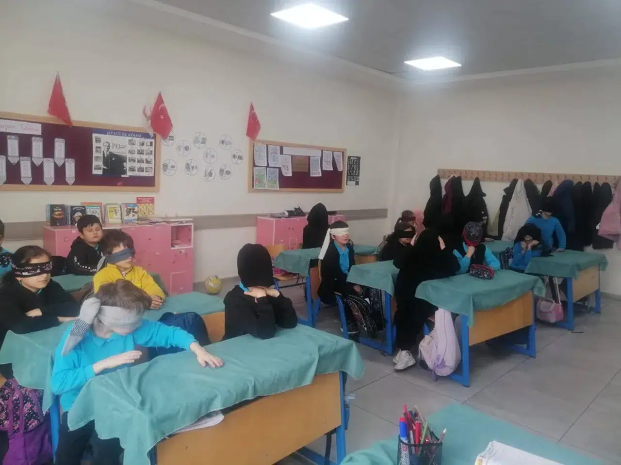 İl Milli Eğitim Müdürlüğünden yapılan bilgilendirmede, görme engelli vatandaşların günlük yaşamda verdikleri mücadeleye dikkat çekmek ve çocuklarda empati yeteneğini güçlendirmek adına ilçe genelindeki okullarda özel bir programın hayata geçirildiği bildirildi.