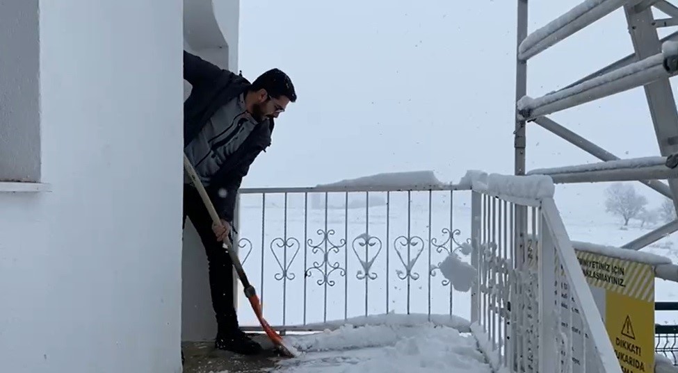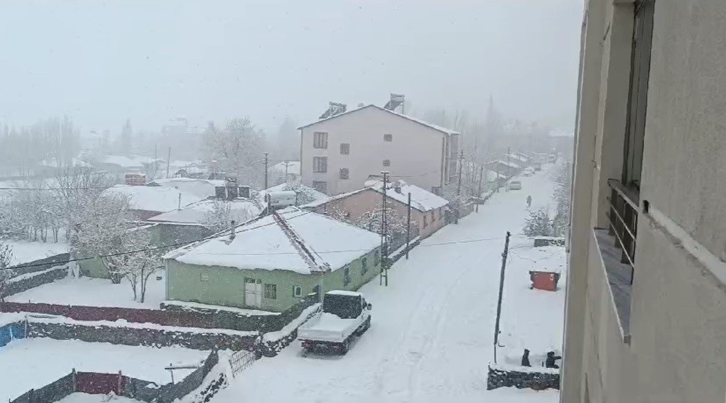 Bingöl’ün Karlıova ilçesinde beklenen kar yağdı, ilçe tamamen beyaza büründü.