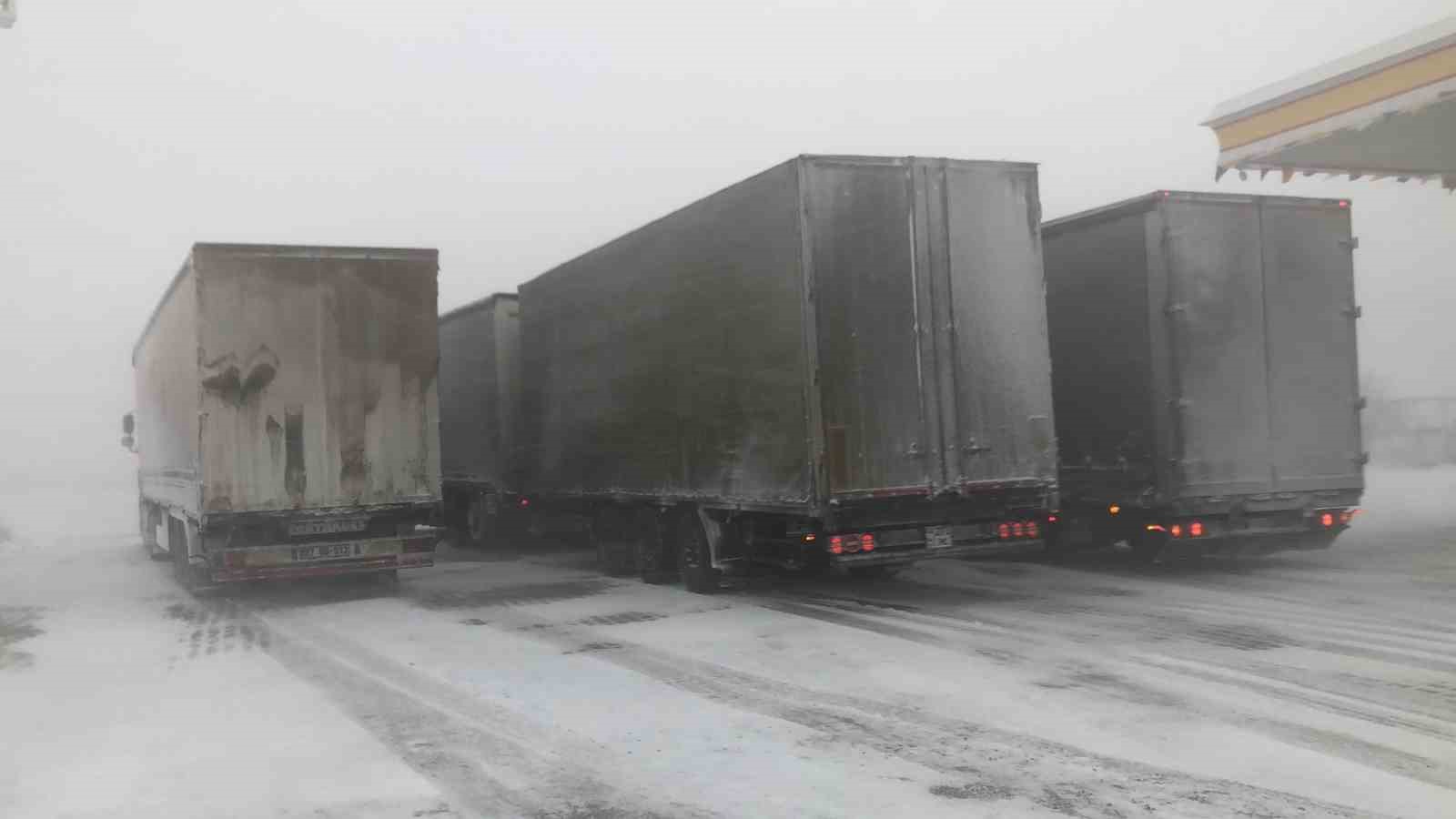 Kars giriş ve çıkışlarında polis sürücüleri dikkatli olmaları konusunda uyarırken yolda ilerlemekte güçlük çeken tır sürücüleri akaryakıt istasyonlarında beklemek durumunda kaldı.