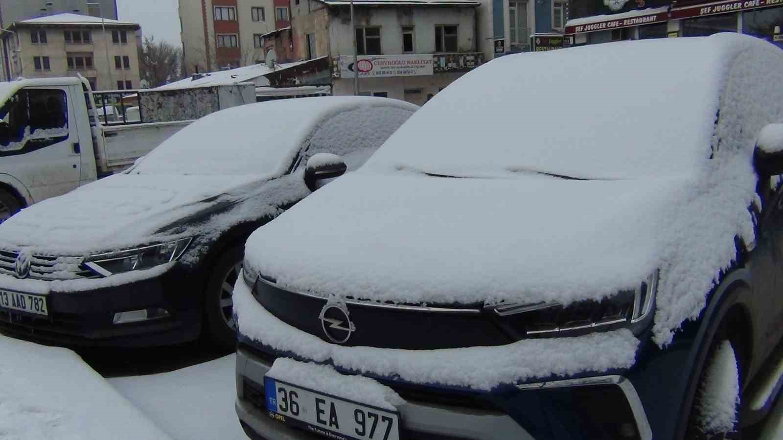 Kar yağışı ile birlikte vatandaşlar araçlarının üzerinde biriken karı temizledi. Hava sıcaklığının eksi 4 derece olduğu Kars’ta yağan kar ile birlikte etrafta uzun süre sonra beyaz örtüyle kaplandı.
