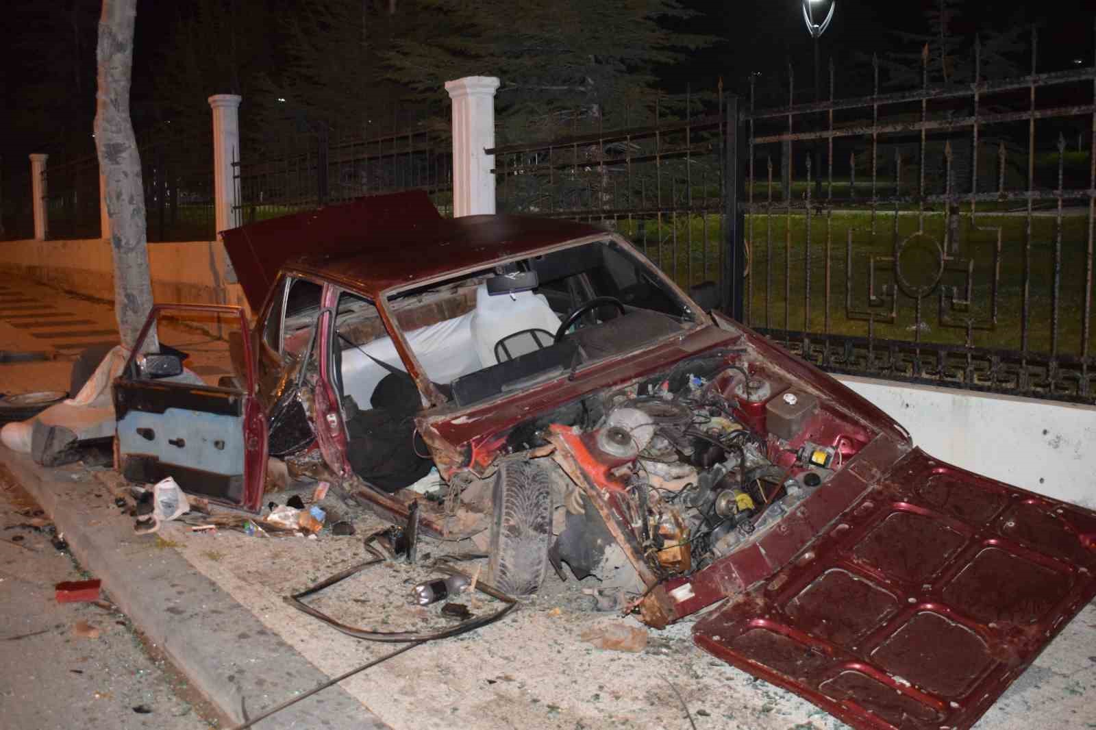 Karaman’da kontrolden çıkan bir otomobil, karşı şeride geçerek parkın duvarına çarptı. Kaldırım üzerinde kalan otomobil hurdaya dönerken, kazada sürücü yaralandı.