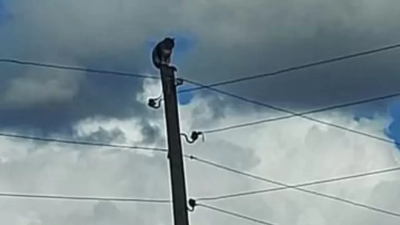 Kars’ta elektrik direğinde mahsur kalan kedi kurtarıldı.