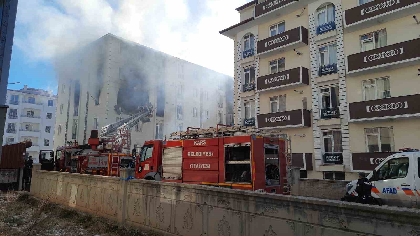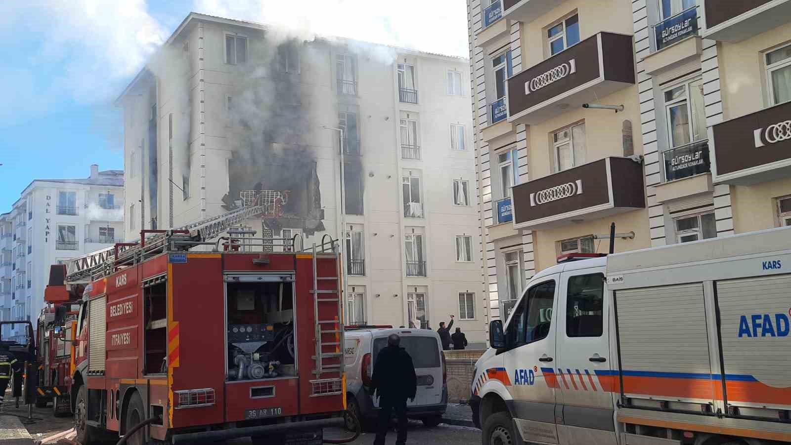 Kars’ta Şehitler mahallesinde 5 katlı binanın üçüncü katında doğal gaz kaynaklı patlamada ortalık savaş alanına döndü.