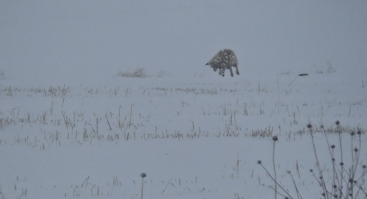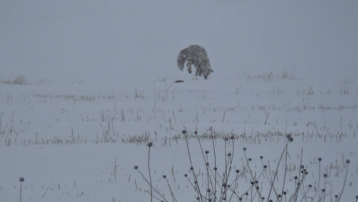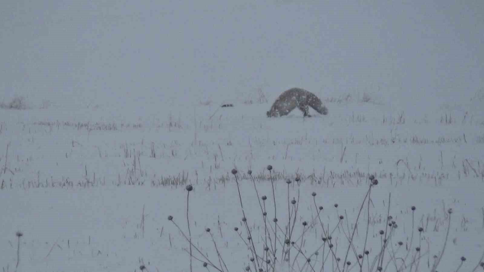 Kentte etkili olan kar yağışı ve soğuk hava, yaban hayatını da olumsuz etkiliyor. Yiyecek bulmak için Kars-Çıldır karayolu yakınlarında avlanan kızıl tilkiler, dakikalarca sesleri dinleyerek avını yakalamaya çalışıyor.