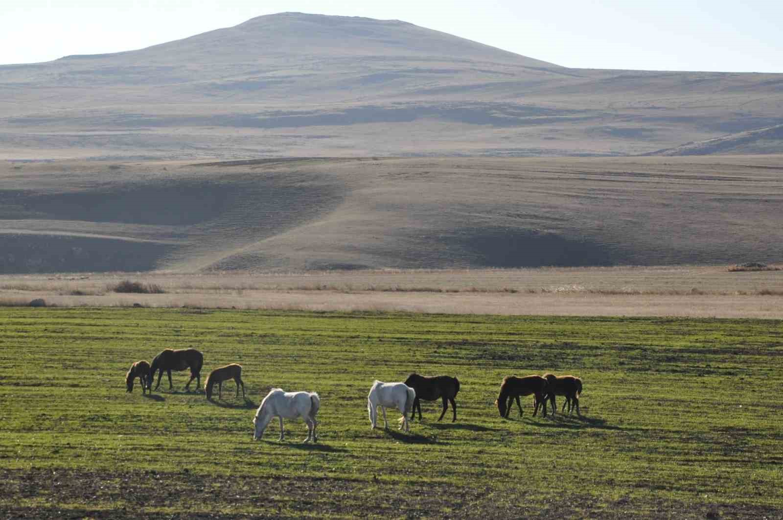 Kars’ta yılkı atları doğal ortamında görüntülendi.