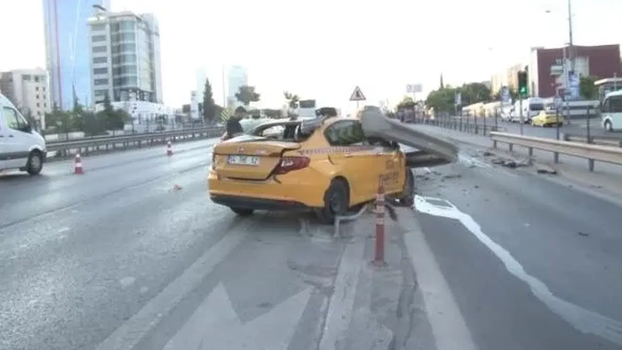 Kartal’da Kontrolden Çıkan Taksi Bariyerlere Girdi