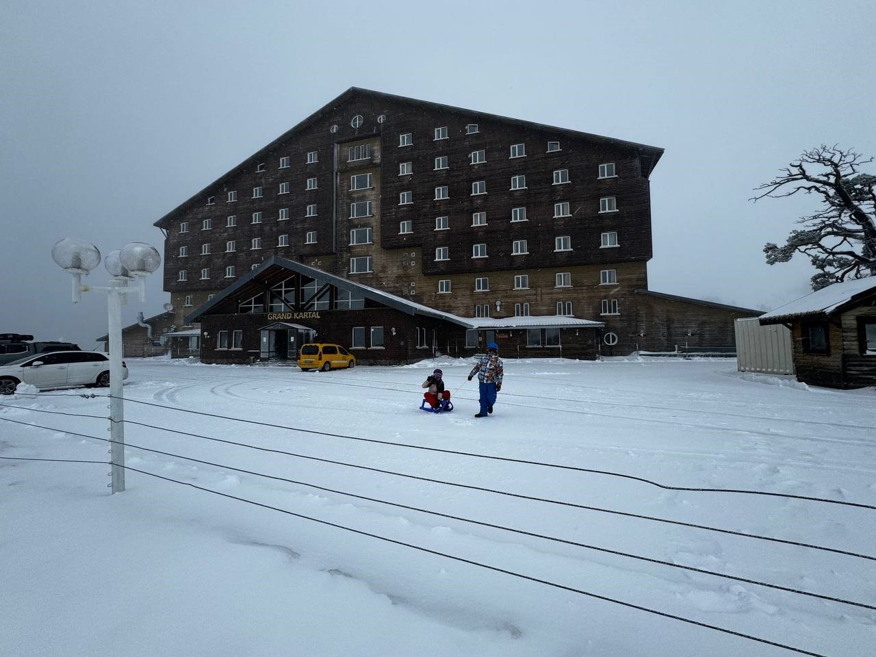 Bolu’nun 2 bin metre rakımda bulunan Kartalkaya Kayak Merkezi’nde kar yağışı etkili oluyor.