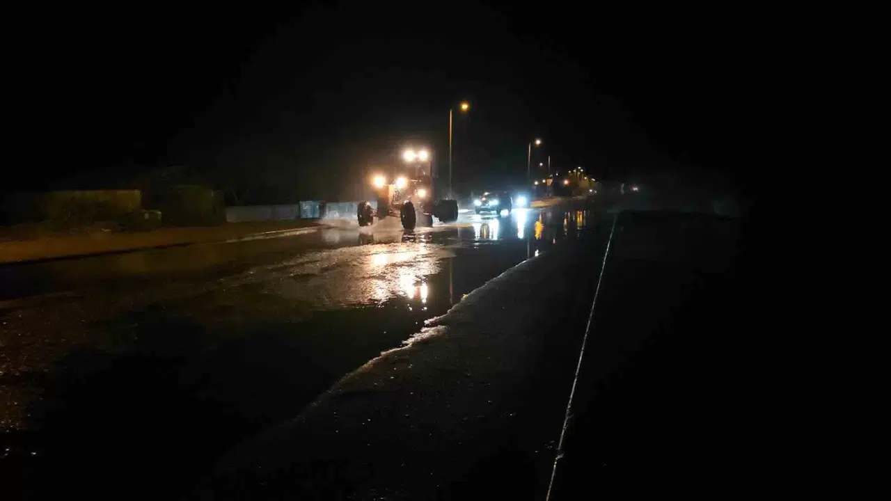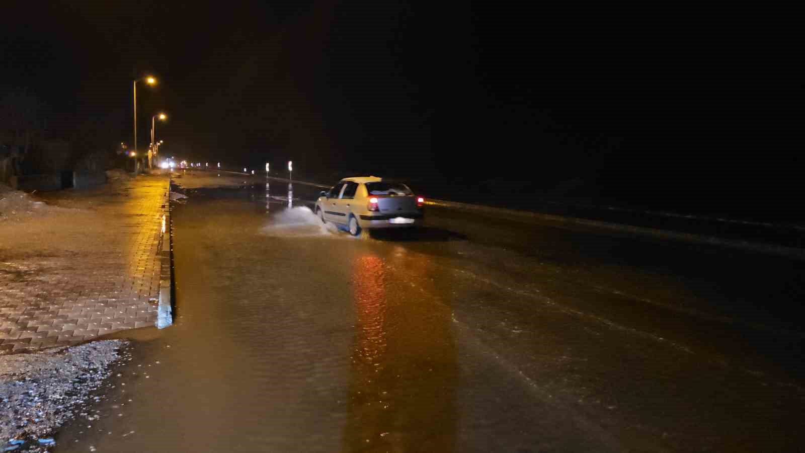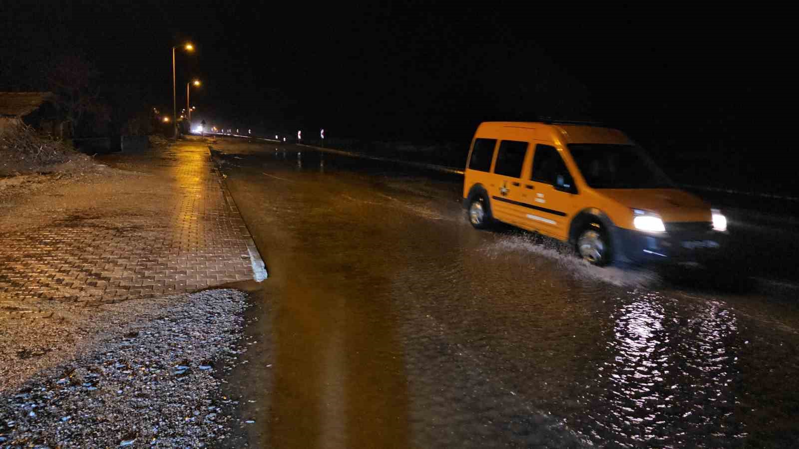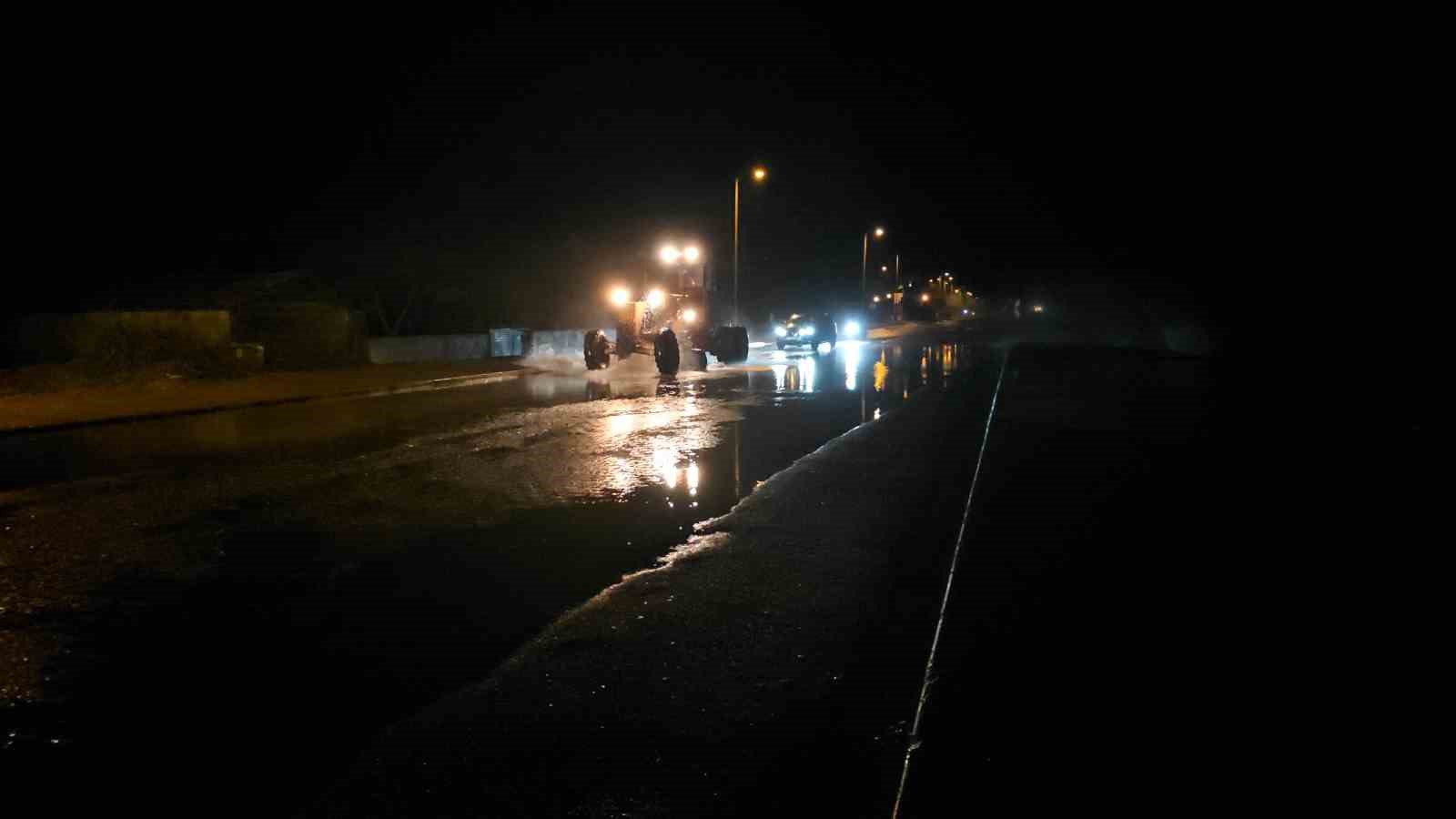 Ekipler, yolda biriken suyun tahliye edilmesi için çalışma başlattı.