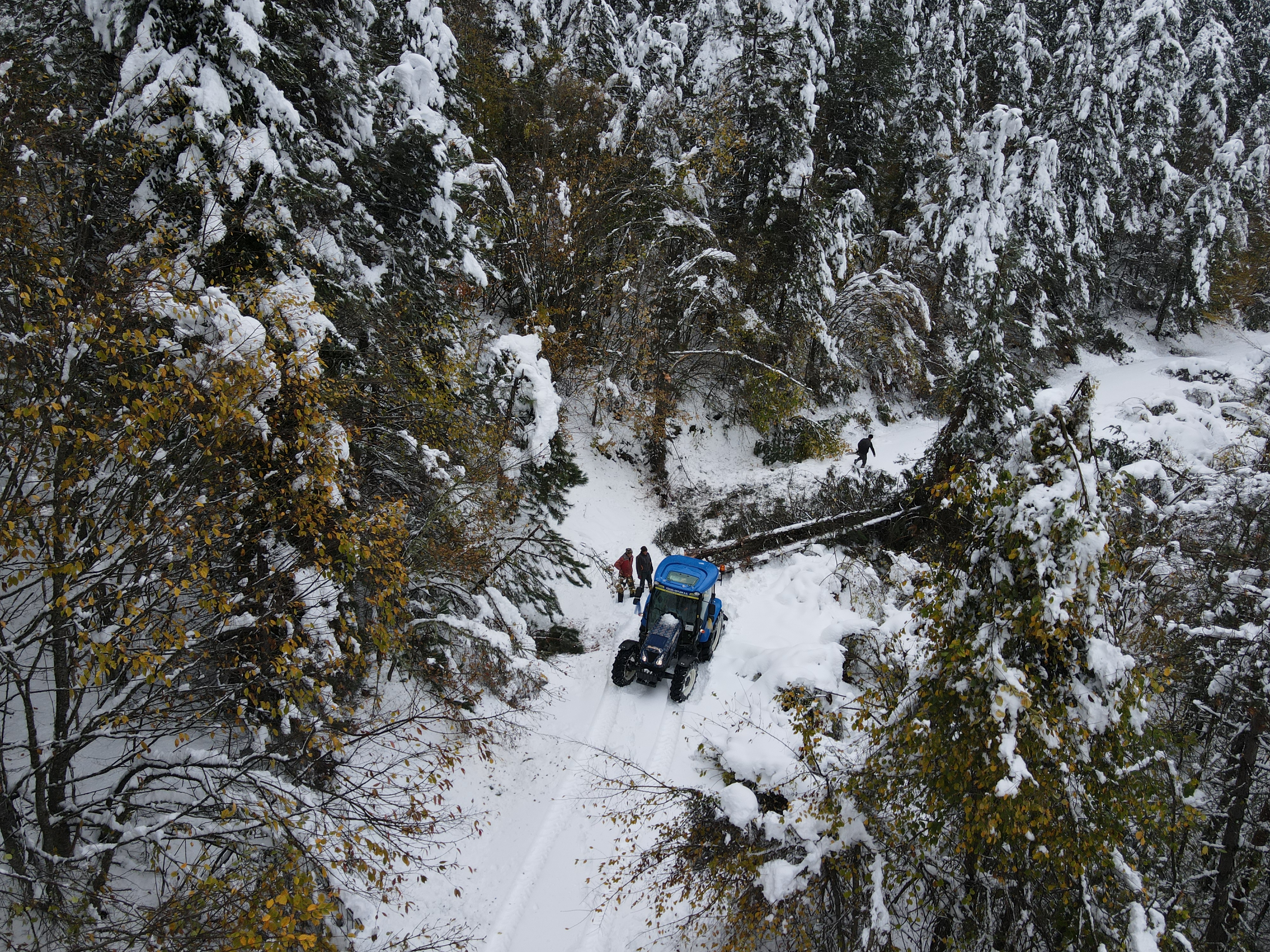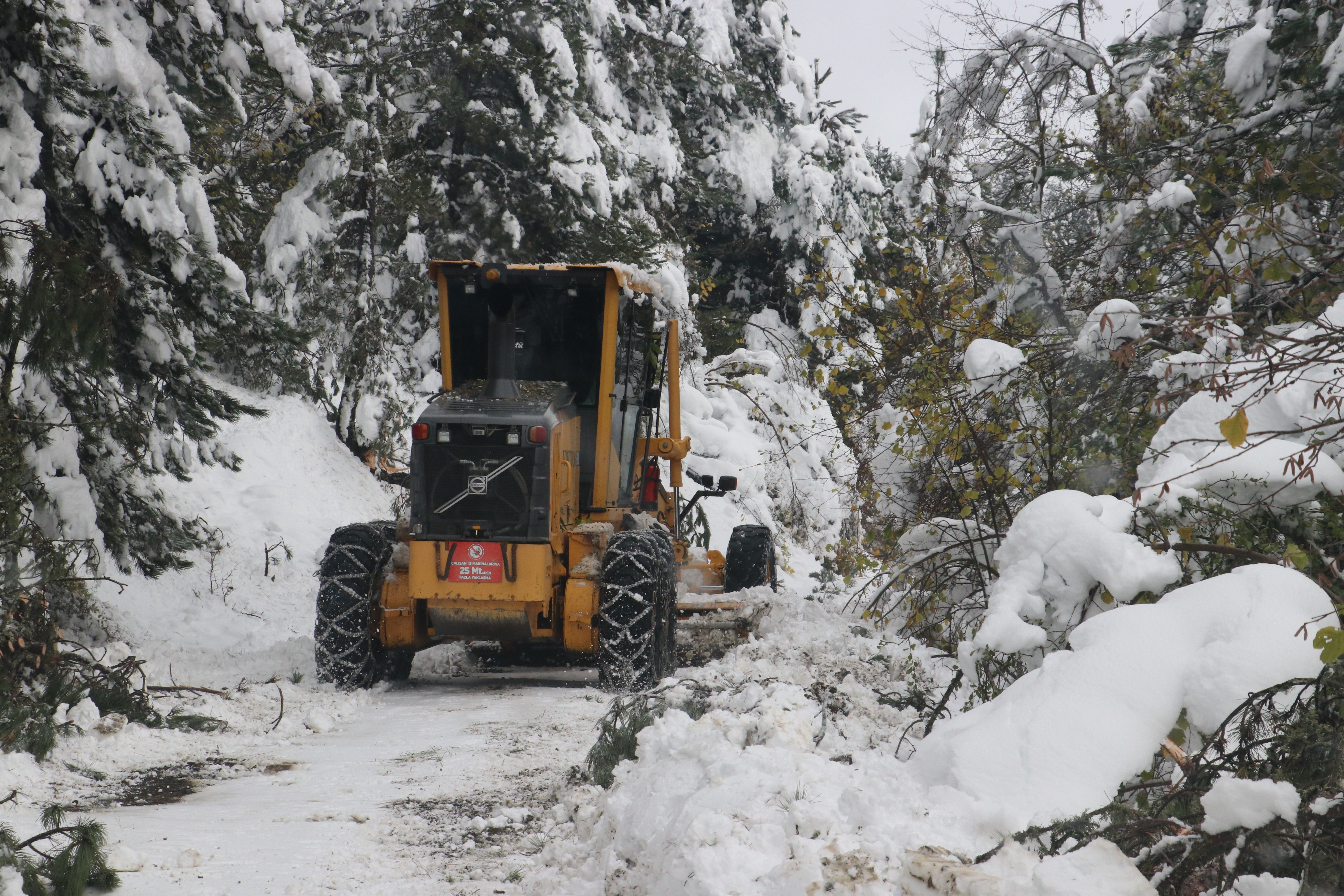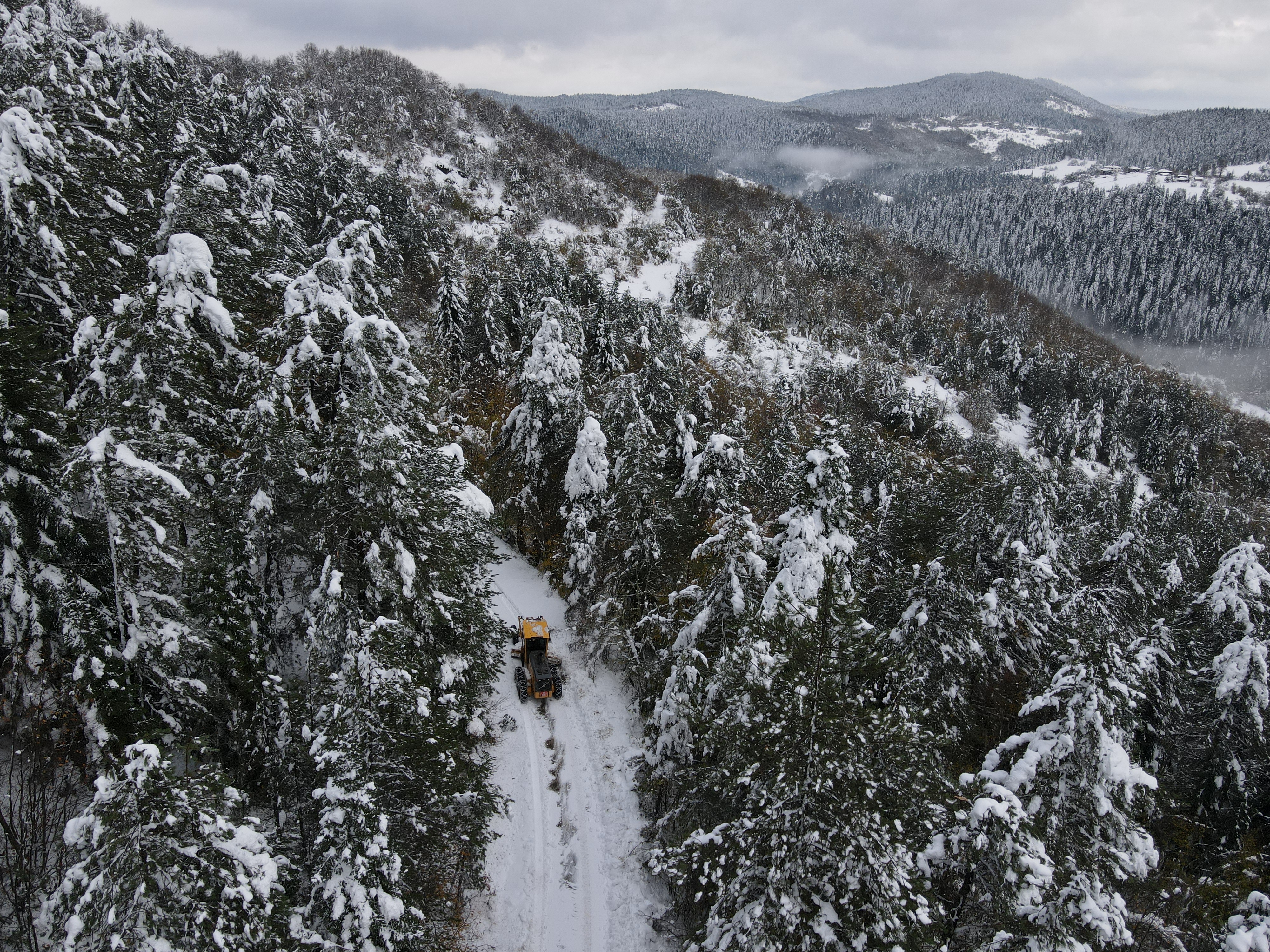 Öte yandan AA ekibi kapalı köy yollarının açılmasını dronla görüntüledi.