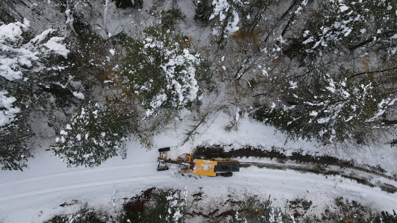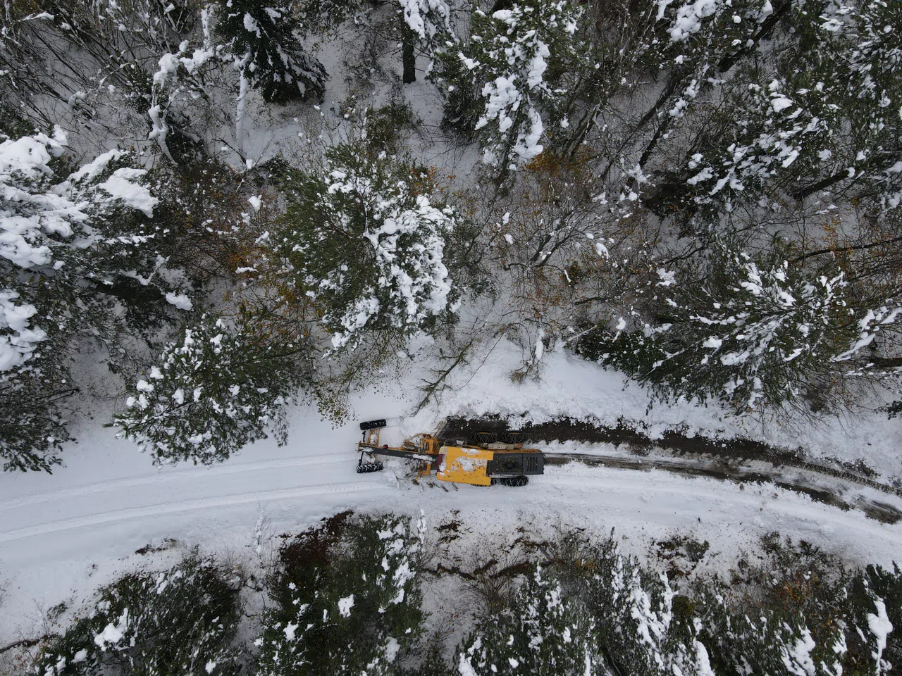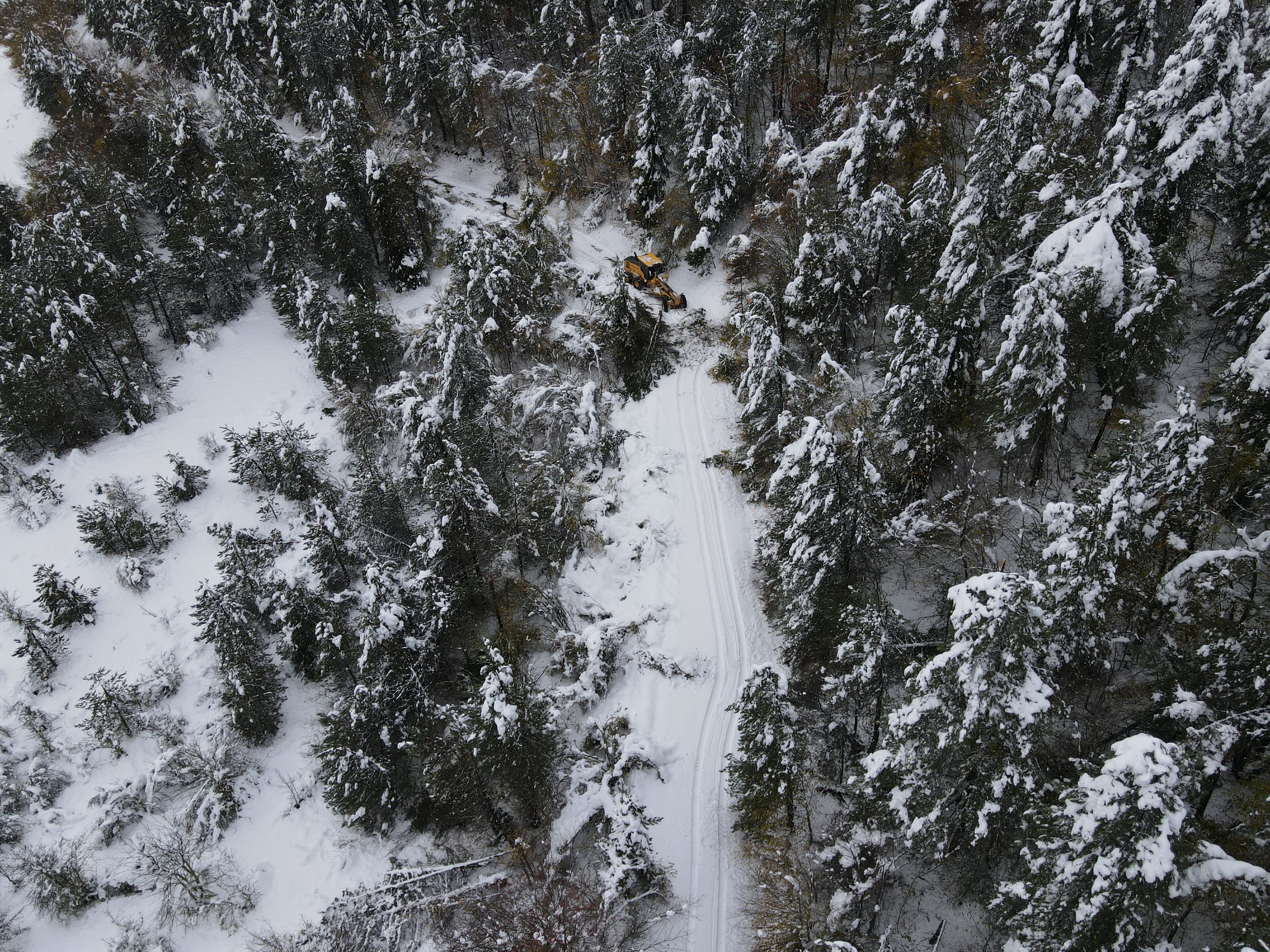 Öte yandan AA ekibi kapalı köy yollarının açılmasını dronla görüntüledi.