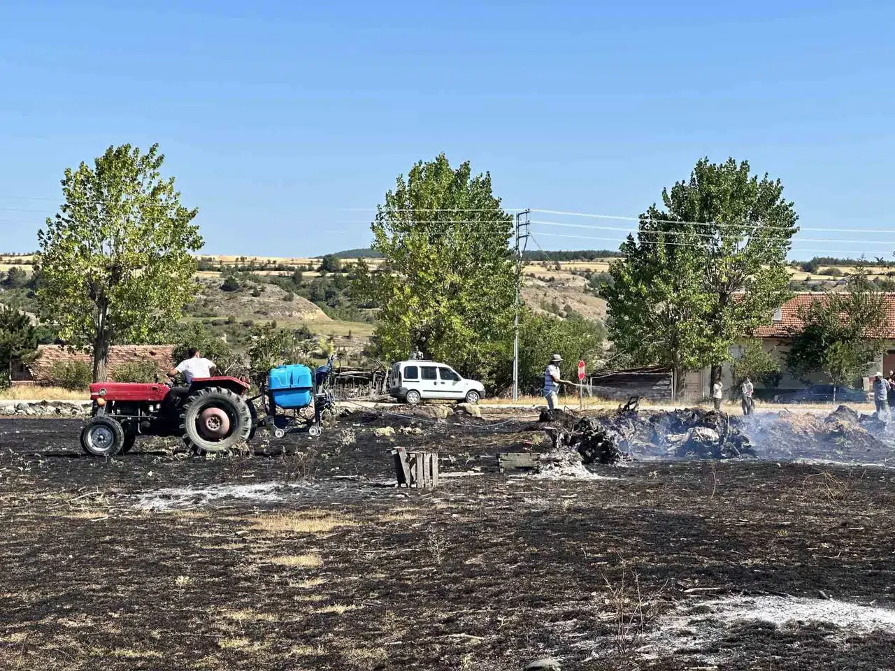 Yangının evlerine yaklaştığını, ancak ekiplerin müdahalesi ile söndürüldüğünü belirten Enver Balcıoğlu, “Acele bir şekilde traktöre su moturu taktım. Su doldurup yangın yerine geldim. Şimdi de yanan yerlere su tutuyoruz. Yangın, evlerimize kadar yaklaştı. Allah’tan rüzgar yoktu” dedi.