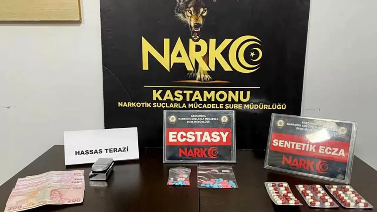 Edinilen bilgiye göre, Kastamonu’da uyuşturucu madde kullanan ve satan şahıslara yönelik çalışmalar devam ediyor. Bu çerçevede Kastamonu Narkotik Suçlarla Mücadele Şube Müdürlüğü ekiplerinin çalışmaları sonucu tespiti yapılan iki şahsın üzerlerinde ve ikametlerinde arama yapıldı. Yapılan aramada 47 adet ecstasy hap, 45 adet uyuşturucu hap, 1 adet hassas terazi ve uyuşturucu madde ticaretinden elde edildiği değerlendirilen 5.250 TL nakit para ele geçirildi.