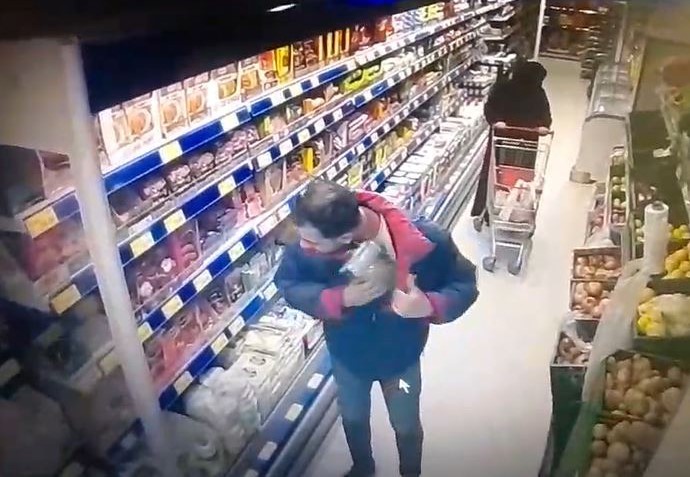 Beylikdüzü’nde bir şahıs, girdiği zincir marketten kavurma ve pastırma çalarak montunun içine sakladı. Rahatlığı ile dikkat çeken adamın o anları ise kameraya yansıdı.