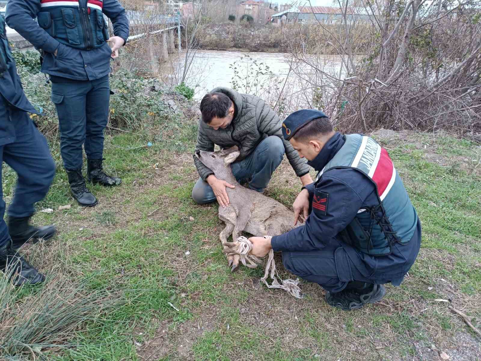 Kastamonu’nun Cide ilçesinde dere yatağına düşerek kayalık alanda sıkışan karaca, jandarma ve belediye ekiplerinin çabalarıyla kurtarıldı.
