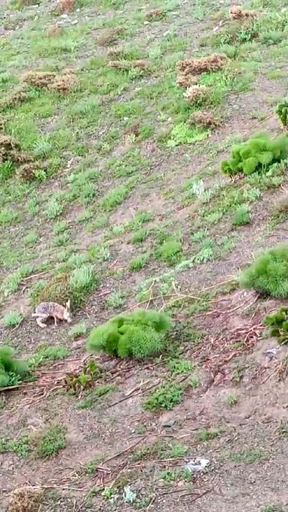 Elazığ’da doğal yaşam alanında bir yaban tavşanı görüntülendi. Görüntüyü çeken kişinin tavşanla diyalogu ise izleyenleri gülümsetti.