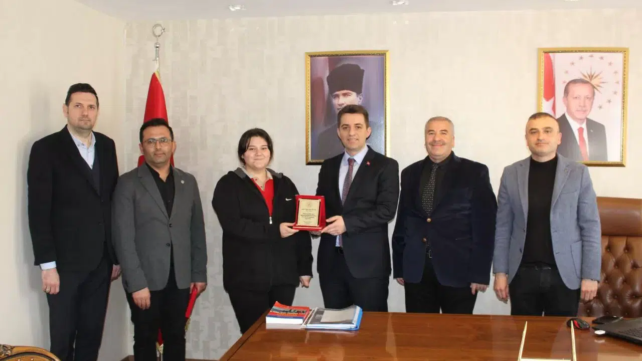 Kaymakamlıktan yapılan yazılı açıklamaya göre, Vatansever, Milli Eğitim Bakanlığının "Dilimizin Zenginlikleri Projesi" kapsamında düzenlenen yarışmada il birinciliği elde eden Biçer ile danışman öğretmeni Erkan Karaman'ı makamında ağırladı.