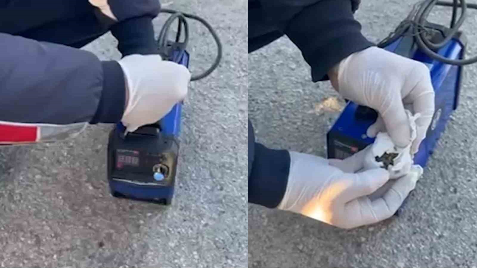 Kırıkkale’de jandarma ekiplerince durdurulan otobüsteki bir yolcunun yanında bulundurduğu kaynak makinasının içinden 19 gram esrar maddesi ele geçirildi.