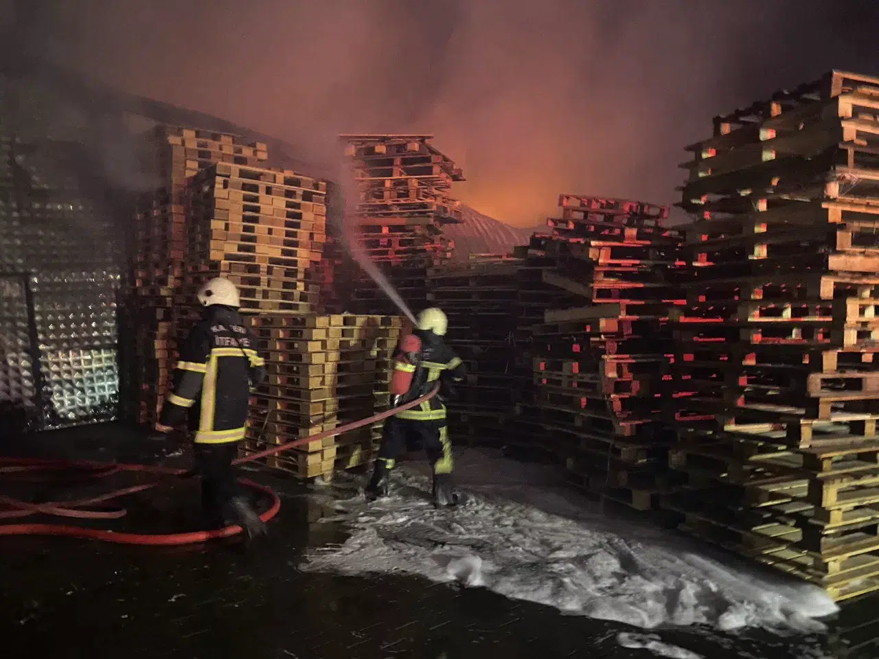 Edinilen bilgiye göre, Organize Sanayi Bölgesi 18. Cadde üzerinde bulunan bir Palet Üretim Tesisi’nin deposunda henüz bilinmeyen bir sebepten yangın çıktı. İhbar üzerine bölgeye çok sayıda polis ve itfaiye ekipleri sevk edildi. Polis ekipleri çevrede güvenlik önlemi alırken, itfaiye ekipleri de yangına müdahale etti. İtfaiye ekiplerinin 1 saatlik çalışması sonucu yangın kontrol altına alındı. Ekipler soğutma çalışmalarına devam ediyor.