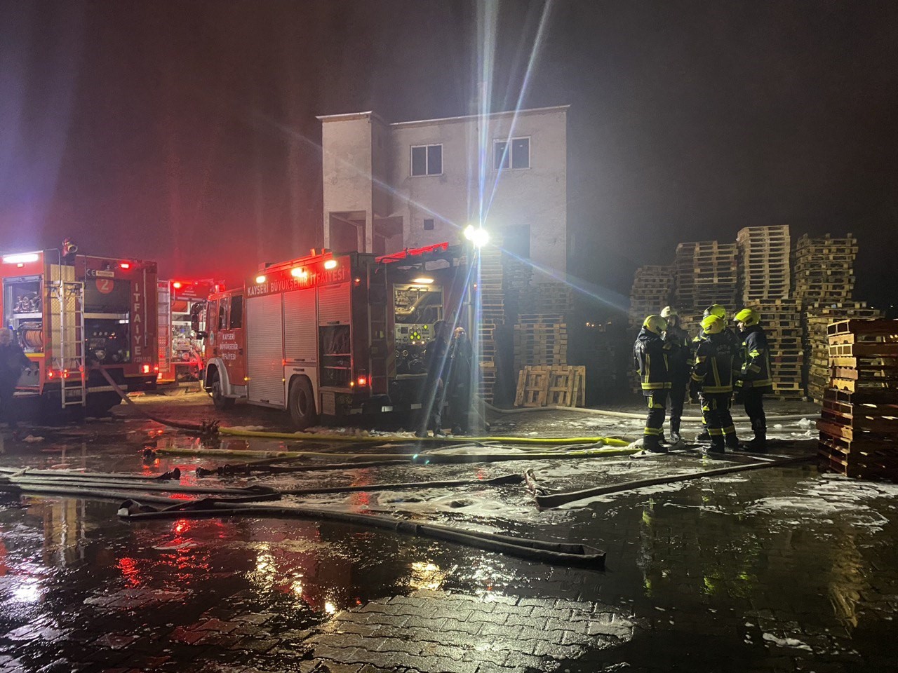 Kayseri’nin Melikgazi ilçesinde bir Palet Üretim Tesisi’nin deposunda çıkan yangın itfaiye ekipleri tarafından 1 saat içerisinde kontrol altına alındı.