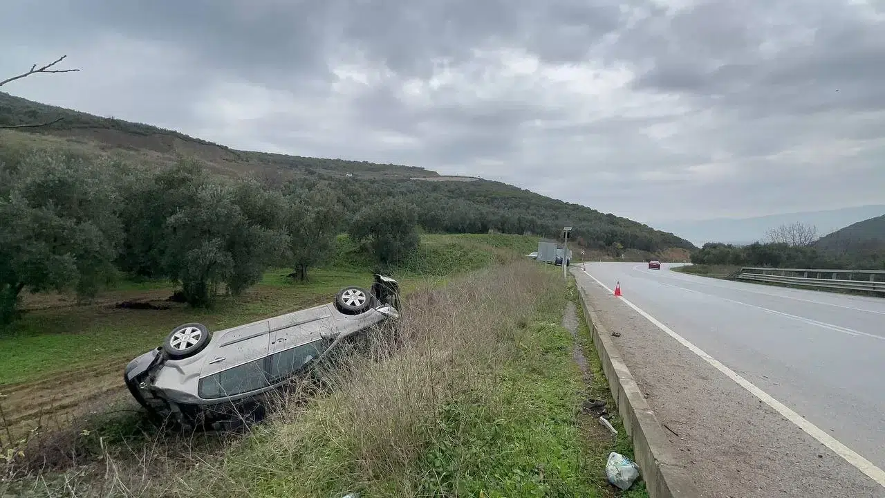 Kaza, Bursa’nın İznik ilçesinde meydana geldi. Edinilen bilgiye göre, Yenişehir ilçesinden İznik istikametine gitmekte olan 46 DH 989 plakalı otomobil sürücüsü, viraja geldiğinde hızını ayarlayamadı. Yağmur sebebiyle yerlerin de kayganlığıyla direksiyon hakimiyetini kaybeden sürücü, otomobiliyle birlikte tarlaya uçtu. Ters dönen araçtan şoför ve yanındaki kişi yaralı olarak kurtuldu. Kaza, anı otomobilin arkasında gelen başka bir araç kamerasına an be an yansıdı.