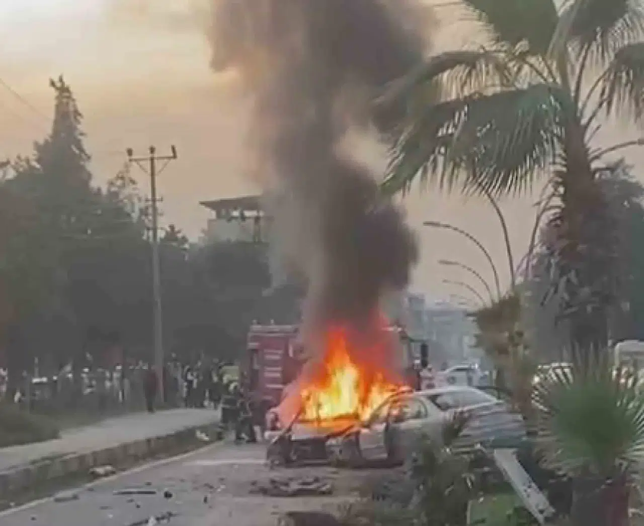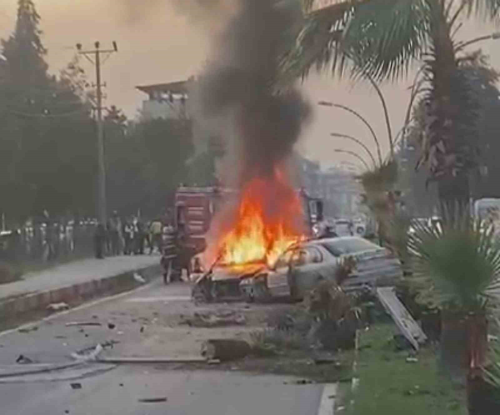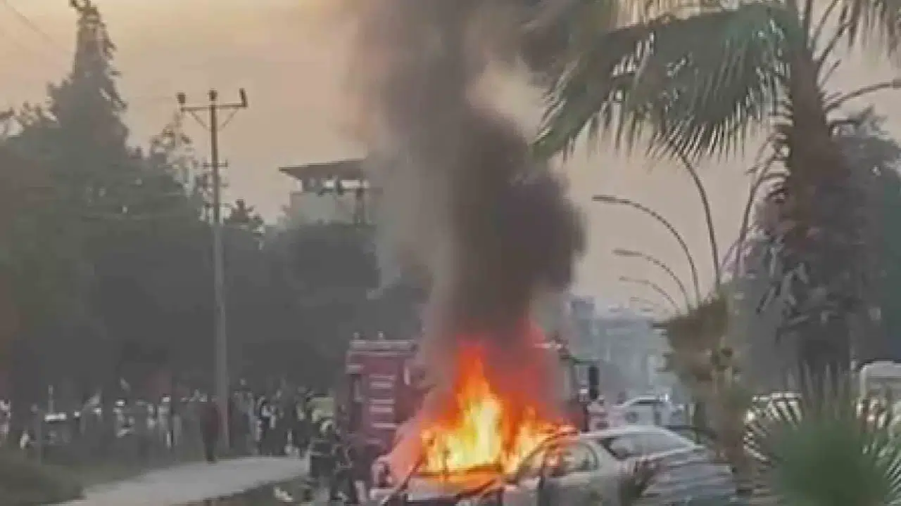 Hatay’ın Dörtyol ilçesinde 4 kişinin yaralandığı trafik kazası sonrası yanmaya başlayan otomobil, cep telefonu kamerasına yansıdı.