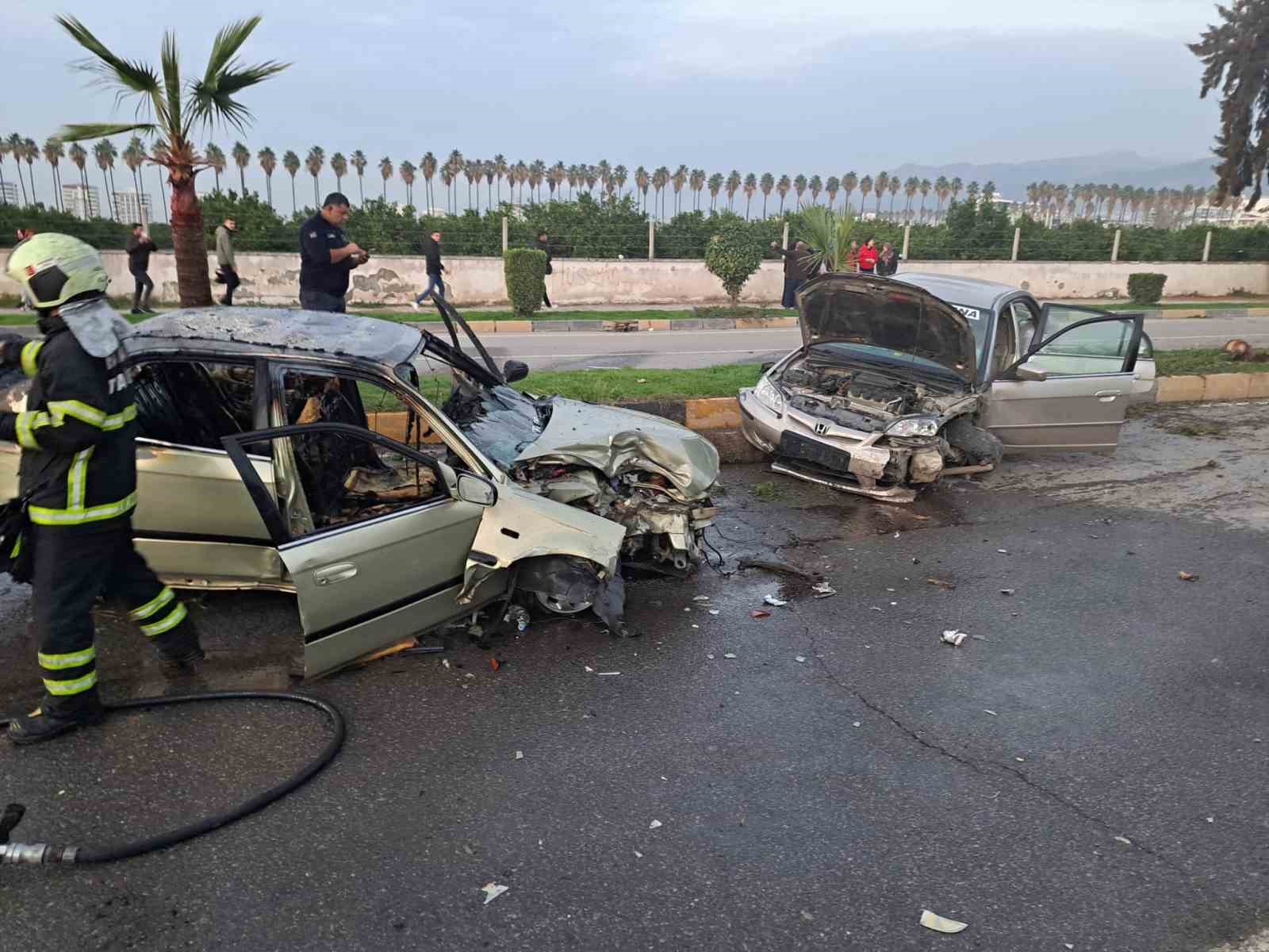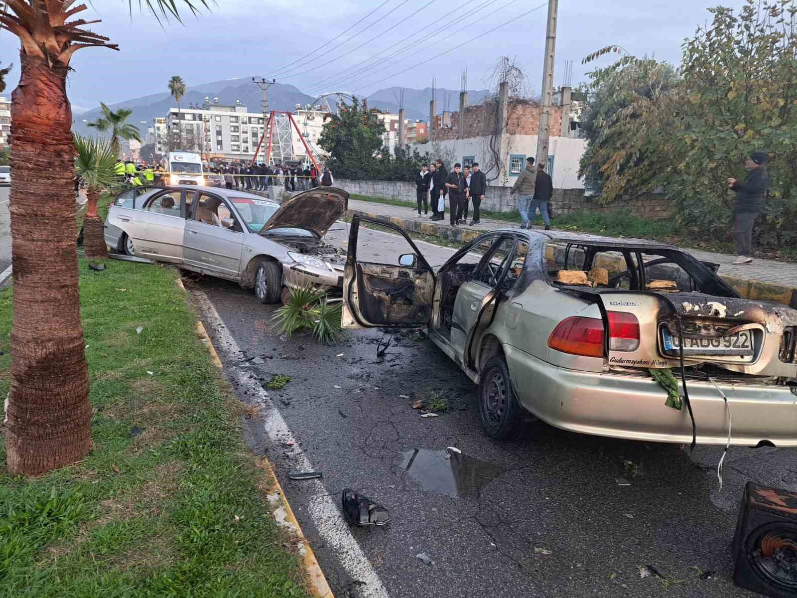 Kaza, Dörtyol ilçesi Numune Evler Mahallesi Hacı Bayram Türkoğlu Bulvarı’nda meydana geldi. Bulvar üzerinde S.A. ve S.C. idaresindeki iki otomobilin çarpışması sonucu araçlarda bulunan 4 kişi yaralandı. Kaza sonrası araçlardan 01 ADG 922 plakalı Honda marka olan alev alev yanmaya başladı. Kazayı gören vatandaşlar durumu 112 Acil Çağrı Merkezi’ne bildirdi. Bölgeye kısa sürede gelen itfaiye ekipleri yangına müdahale etti. Yaralılar sağlık ekipleri tarafından Dörtyol Devlet Hastanesine sevk edildi.