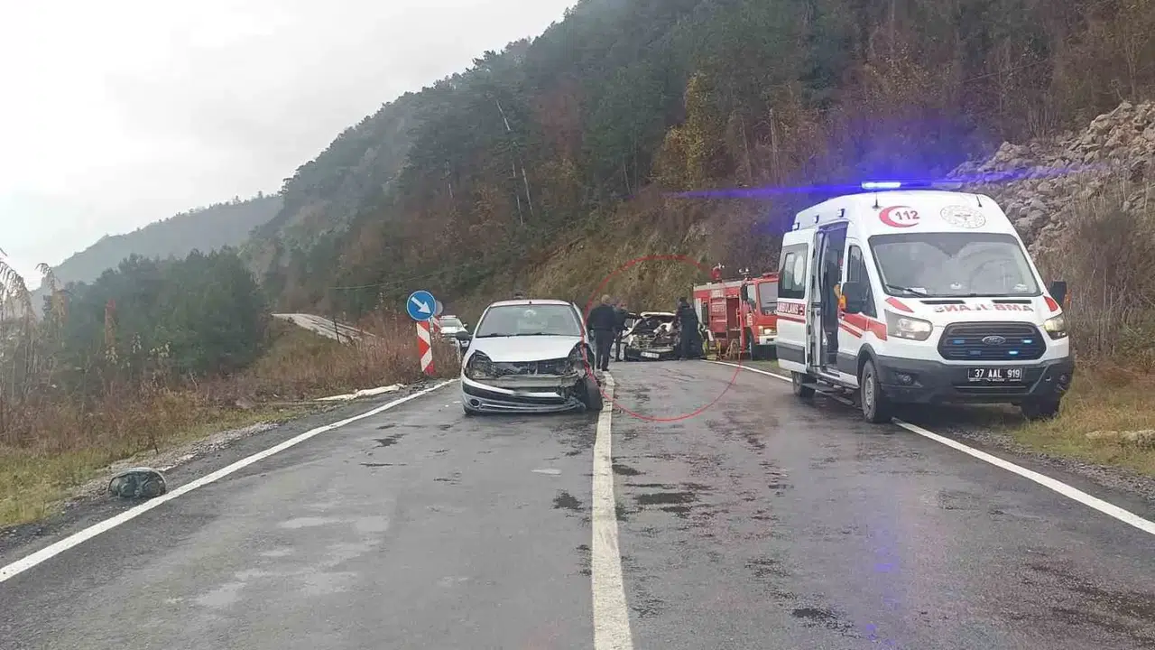 Kaza, İnebolu ilçesi Özlüce köyü Eyrik mevkiinde meydana geldi. Edinilen bilgiye göre, sürücüsü öğrenilemeyen 06 Z 0760 plakalı Tofaş marka otomobil, karşı yönden gelen, sürücüsü ve plakası öğrenilemeyen otomobil ile kafa kafaya çarpıştı. Çapmanın etkisi ile hurdaya dönen Tofaş marka otomobilde sıkışan sürücü, yaralandı. Kazayı görenlerin ihbarı üzerine olay yerine gelen itfaiye ekipleri tarafından yaralı sürücü sıkıştığı yerden çıkartıldı. Sağlık ekiplerince ilk müdahalesi yapılan sürücü, İnebolu Devlet Hastanesine kaldırıldı.