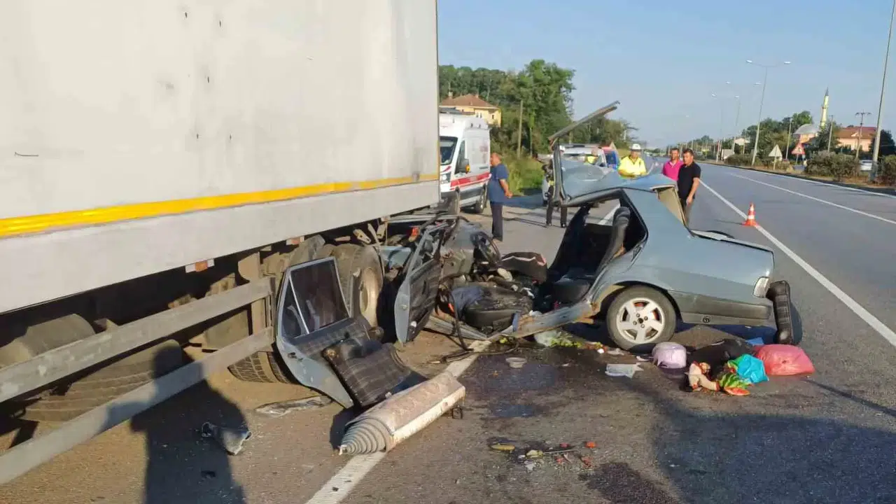 Samsun’da yoldan çıkıp park halindeki kamyona çarpan Tofaş marka otomobil parçalanırken, kazada 1 kişi hayatını kaybetti, 3 kişi ağır yaralandı.