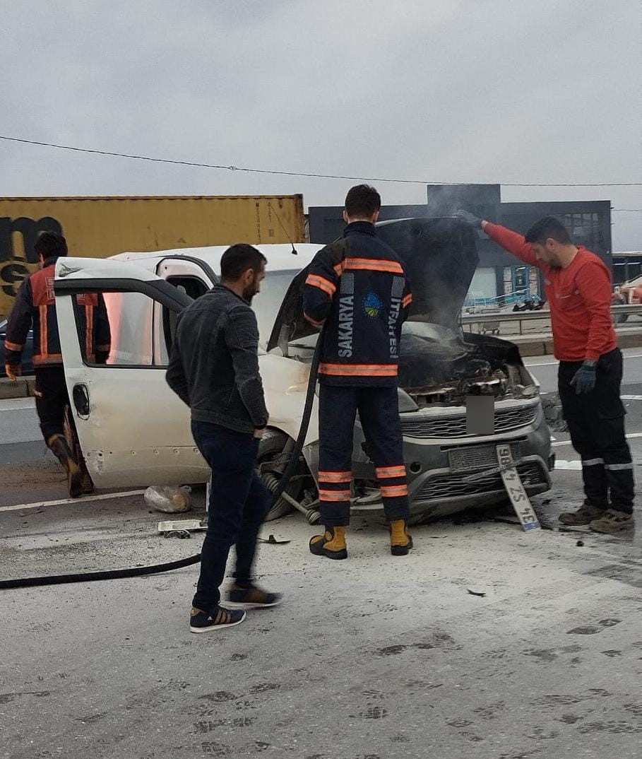 Sakarya’nın Akyazı ilçesinde iki hafif ticari aracın çarpışmasının ardından kazaya karışan bir aracın motor kısmında yangın çıktı. Yangın itfaiye ekipleri tarafından söndürülürken, yaralanan 1 kişi hastaneye kaldırıldı.