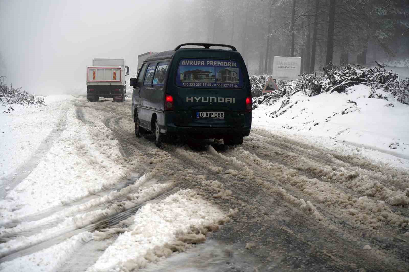 Balıkesir’in Edremit ve Havran ilçelerinde Kazdağları’nın yüksek kesimlerinde sabah erken saatlerde başlayan kar yağışı etkili oluyor. Balıkesir Edremit ve Çanakkale Yenice Karayolunda kar yağışı nedeniyle sürücülerin tedbirli ve dikkatli olmaları istendi.