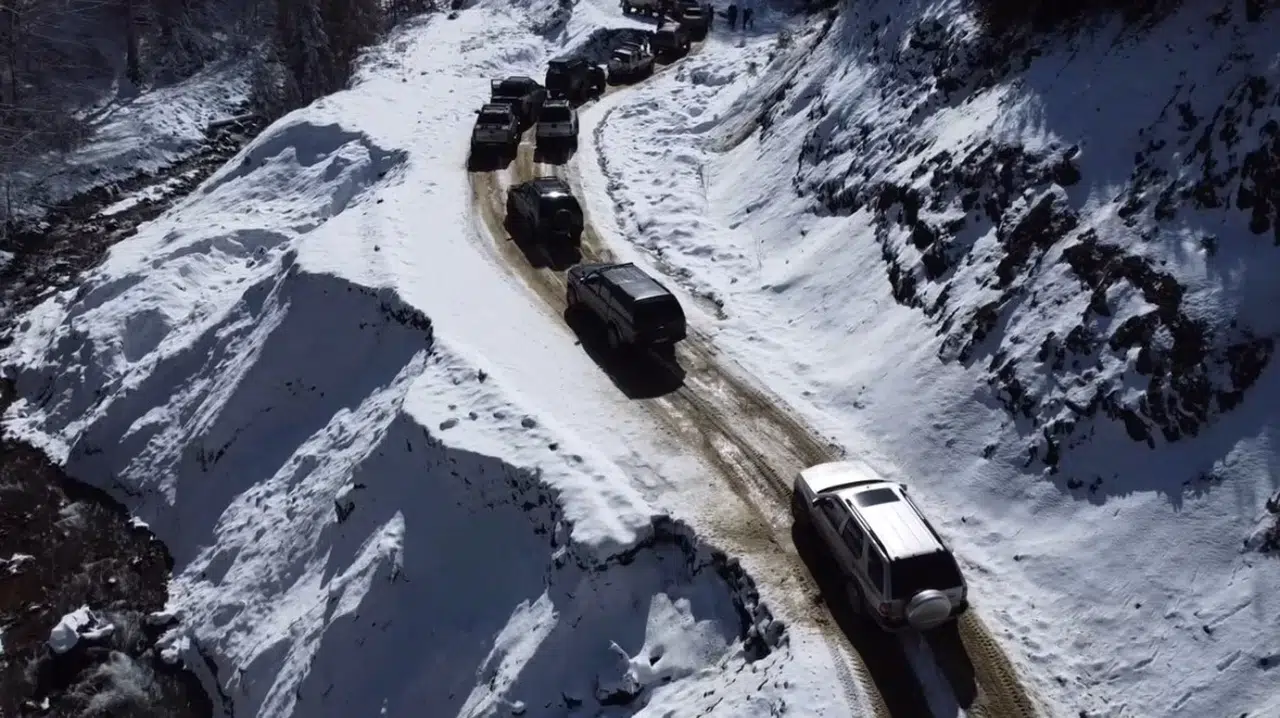 Düzce’de kış aylarında şehre kar yağmayınca üniversite öğrencileri karla buluşmak için yaylalara Off-Road araçları ile çıkarak karla buluştu.