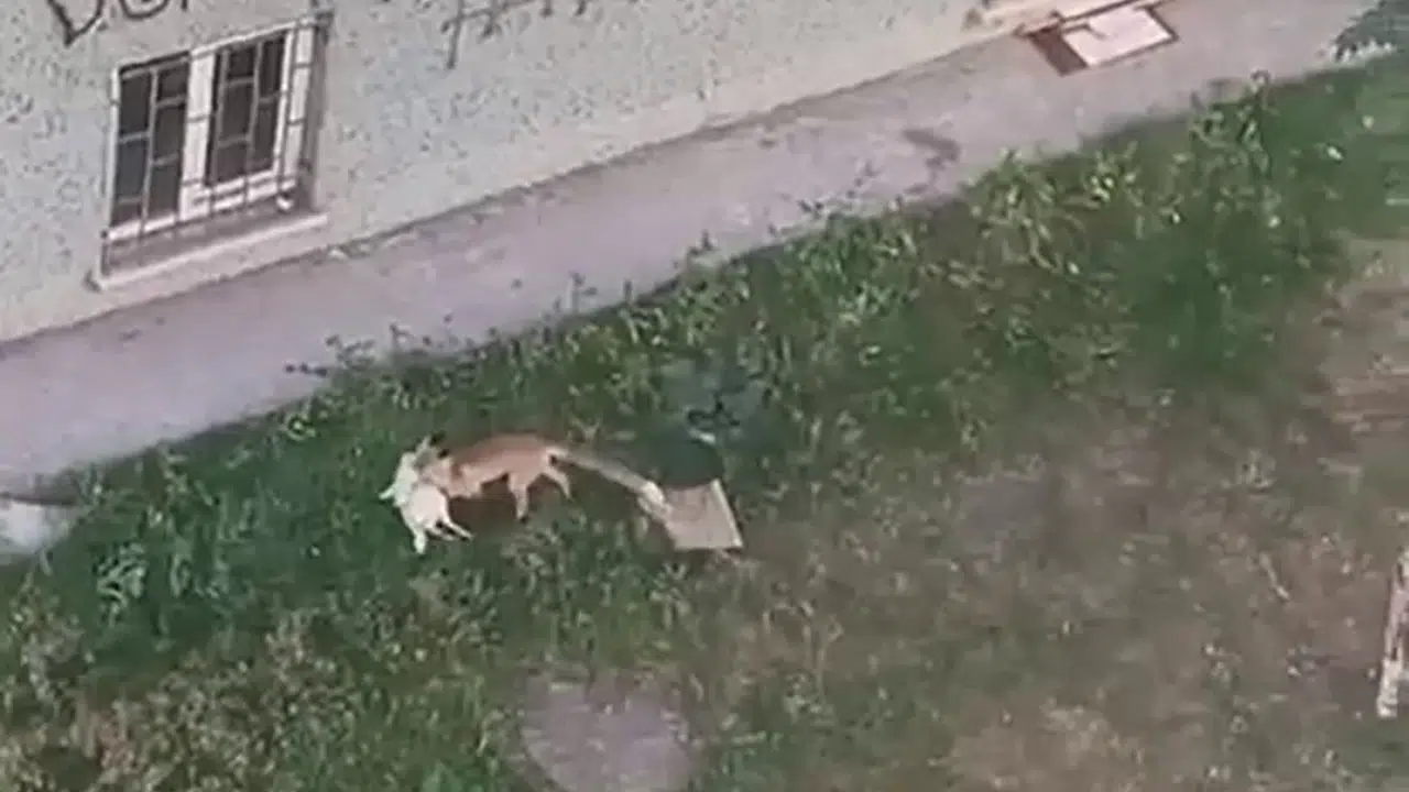 Erzurum’da gün ortasında bir apartman sitesinde kümese dalan tilki tavuğu alarak kayıplara karıştı.