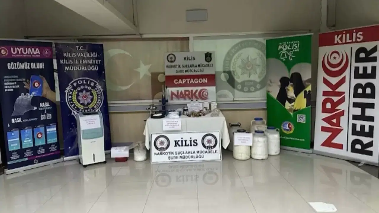 Kilis Cumhuriyet Başsavcılığı koordinesinde, Narkotik Suçlarla Mücadele Şube Müdürlüğü ekipleri, uyuşturucu madde ticareti yapan ve kullanan şahısların yakalanmasına yönelik dron destekli operasyon düzenledi. Operasyonda 21 şüpheli gözaltına alınırken, gözaltına alınan şüphelilerin adreslerine yapılan aramalarda, 84 kilo 660 gram toz kimyasal madde, 4 kilo 600 gram sıvı kimyasal madde, 4 gram extacy tozu, 1,12 gram esrar, 465 adet captagon, 4 adet sentetik ecza, 1 adet extacy,1 adet hassas terazi, 2 adet ruhsatsız av tüfeği ele geçirildi.
