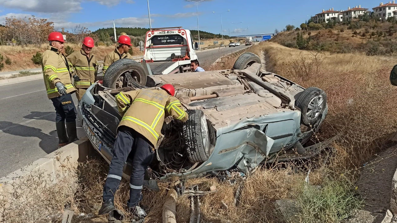 Çorum-Kırıkkale karayolunda kontrolden çıkan otomobilin takla attığı kazada 1 kişi yaralandı.