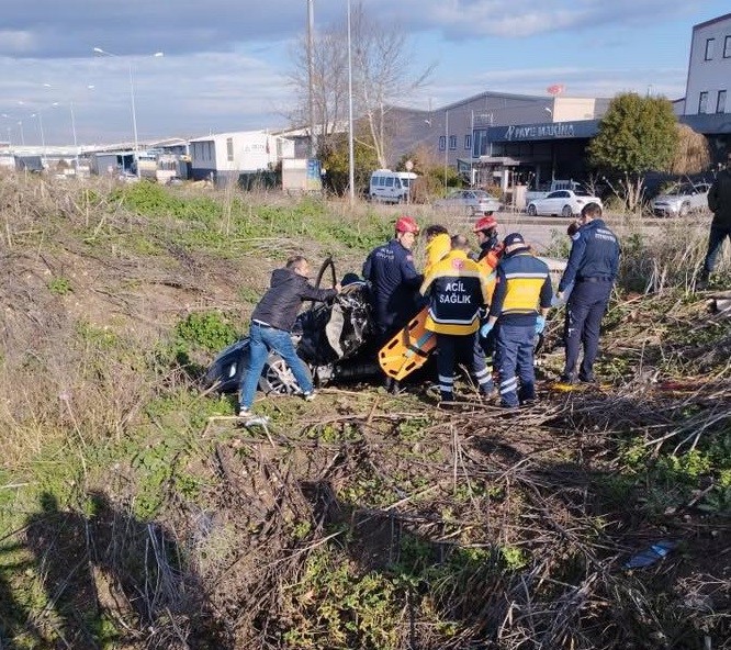 Kaza, Bursa’nın Nilüfer ilçesi Altınşehir Mahallesi’nde meydana geldi. Edinilen bilgiye göre, Fuat Ö., idaresindeki 16 KNR plakalı kamyonet anayolda kırmızı ışık ihlali yapan Sezgin B., yönetimindeki 16 BCN plakalı otomobile çarptı. Kazanın etkisiyle savrulan araç, dere kenarına uçtu. Araçta sıkışan sürücü ve yolcu konumundaki Gülçin B., için çevredekiler yardıma koşarken, 112 ekiplerine de bilgi verildi. İhbar üzerine olay yerine gelen itfaiye ekipleri, araçtan çıkardığı yaralıları sağlık ekiplerine teslim etti. İlk müdahalesi yapılan yaralılar, ambulans ile Bursa Şehir Hastanesine sevk edildi.